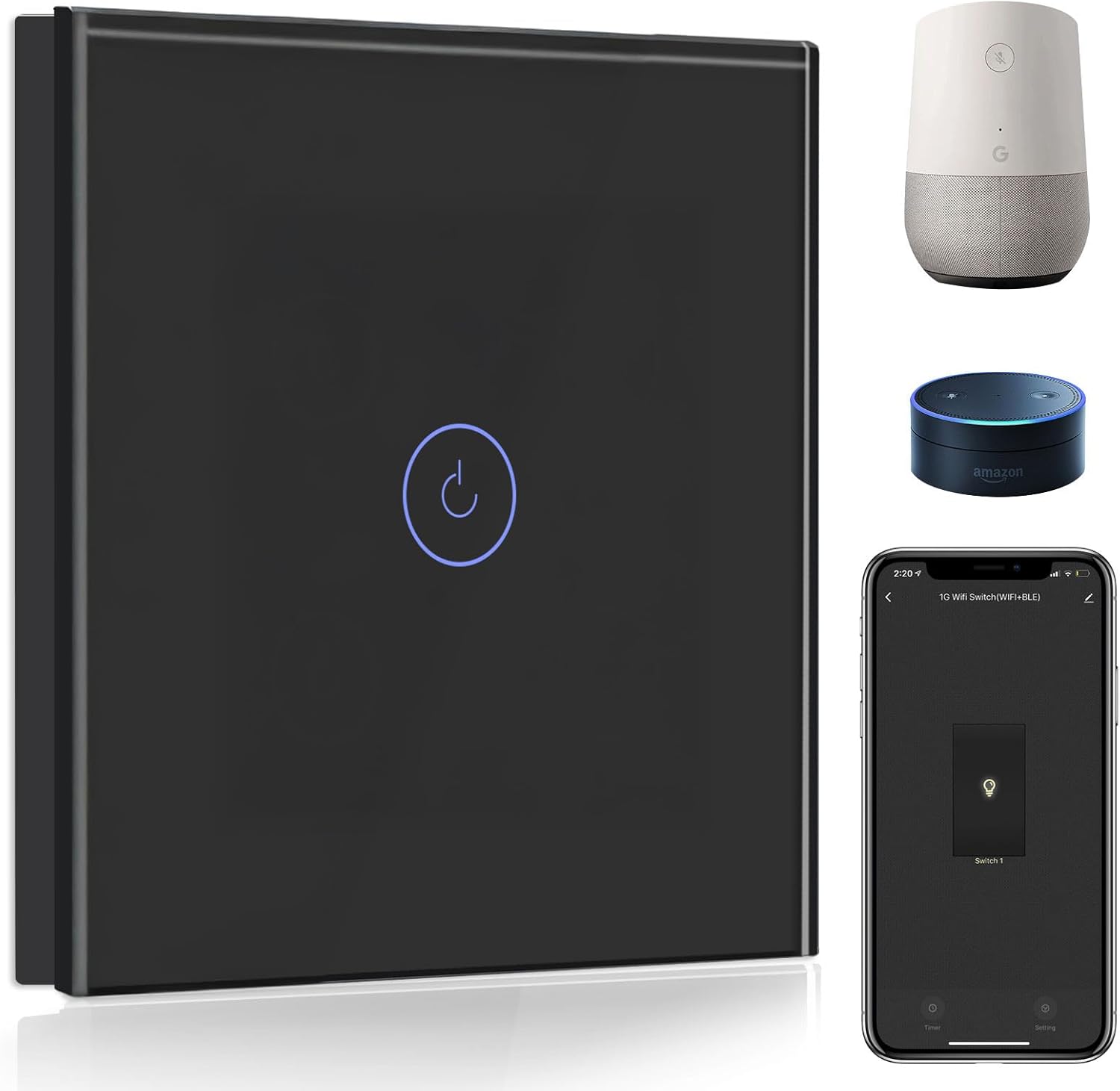 - HeuxGir Smart-WLAN-Touch-Lichtschalter 86 x 86 mm (Glasfront, Status-LED) mit Alexa & Google Home