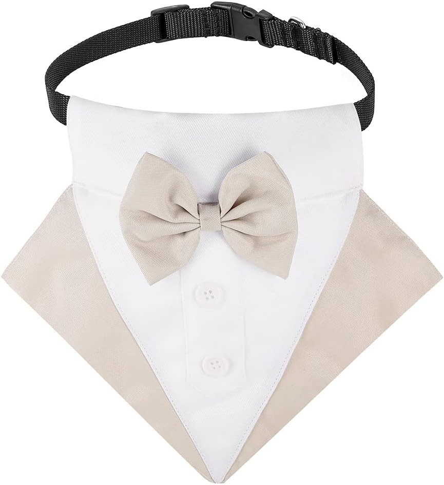 BT Bear Smoking-Bandana-Halsband für Hunde (Größe M) – verstellbar mit Fliege, Beige