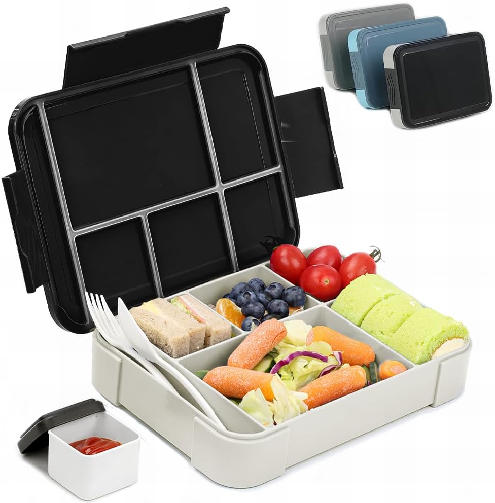 - Bugucat Kinder-Brotdose mit 6 Fächern und Besteck-Set, 1.330 ml – auslaufsicheres Bento für Mädchen & Jungen