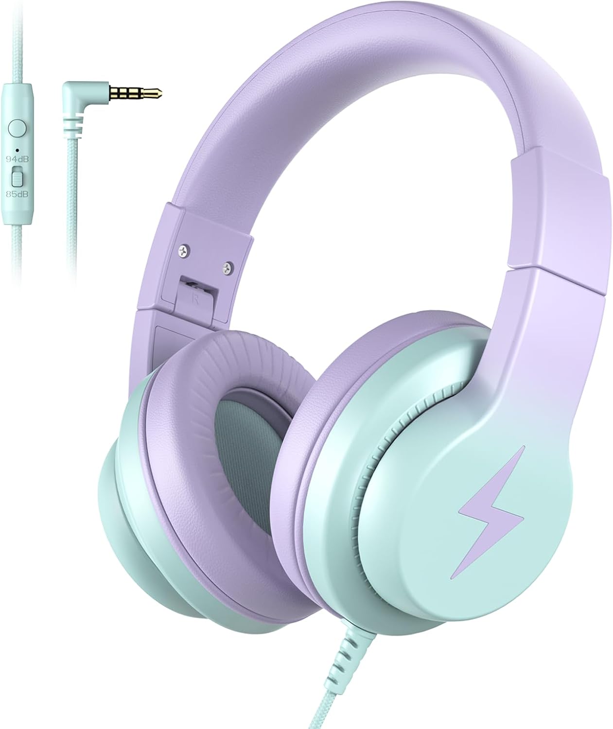 Candy Bila Kinder-Kopfhörer mit Kabel (85/94 dB) und HD-Mikrofon, Over-Ear, faltbar – Lila Farbverlauf