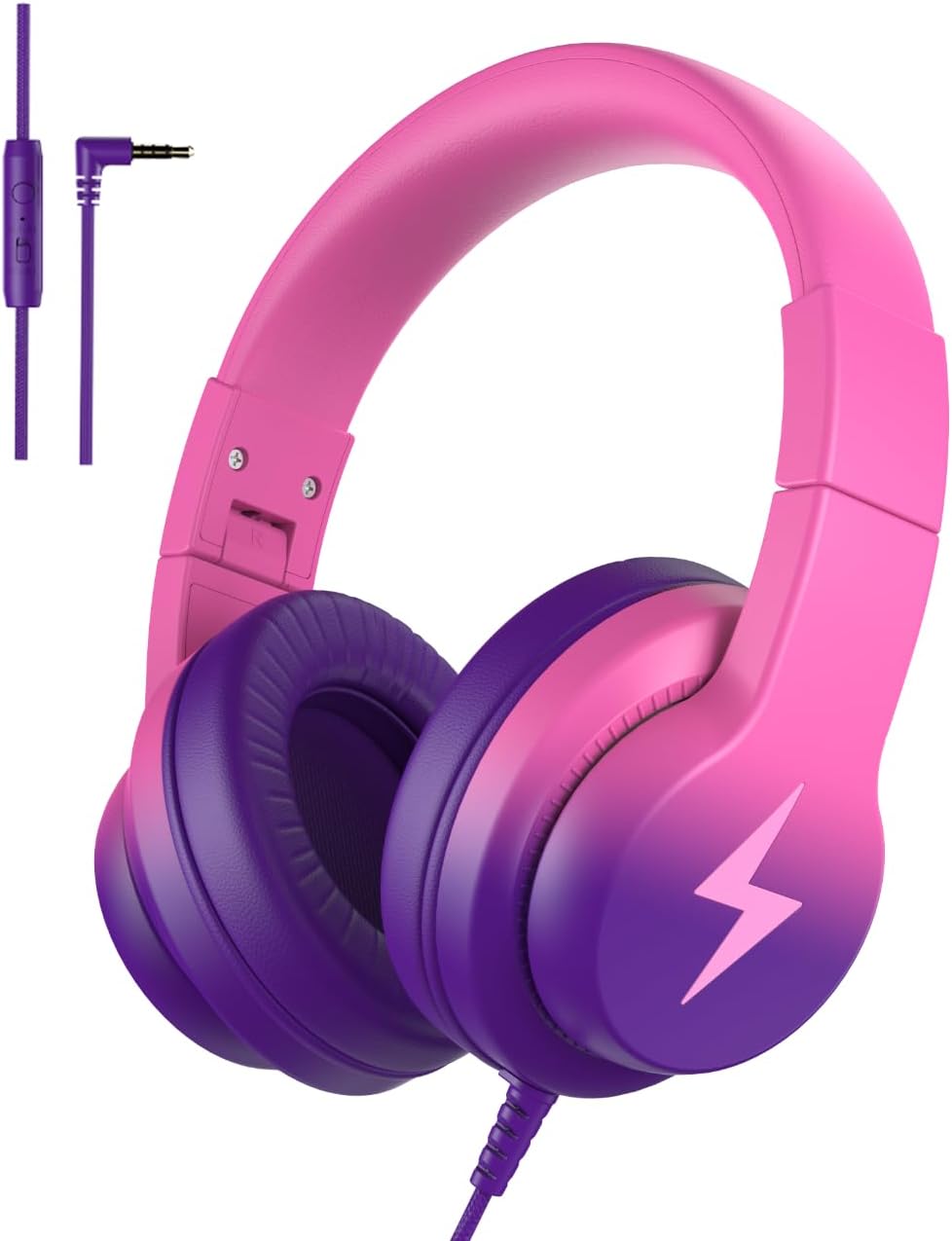 Candy Bila Kinder-Kopfhörer mit Kabel (85/94 dB) und HD-Mikrofon – faltbar, Over-Ear, Lila-Rosa Farbverlauf