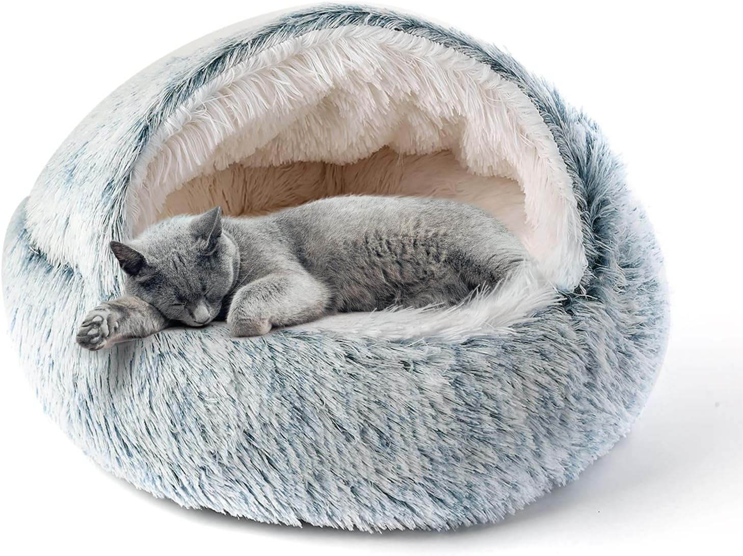 CATISM Katzenbett Flauschig – Katzenhöhle/Zeltbett halbgeschlossen, waschbare Katzendecke, 50 cm