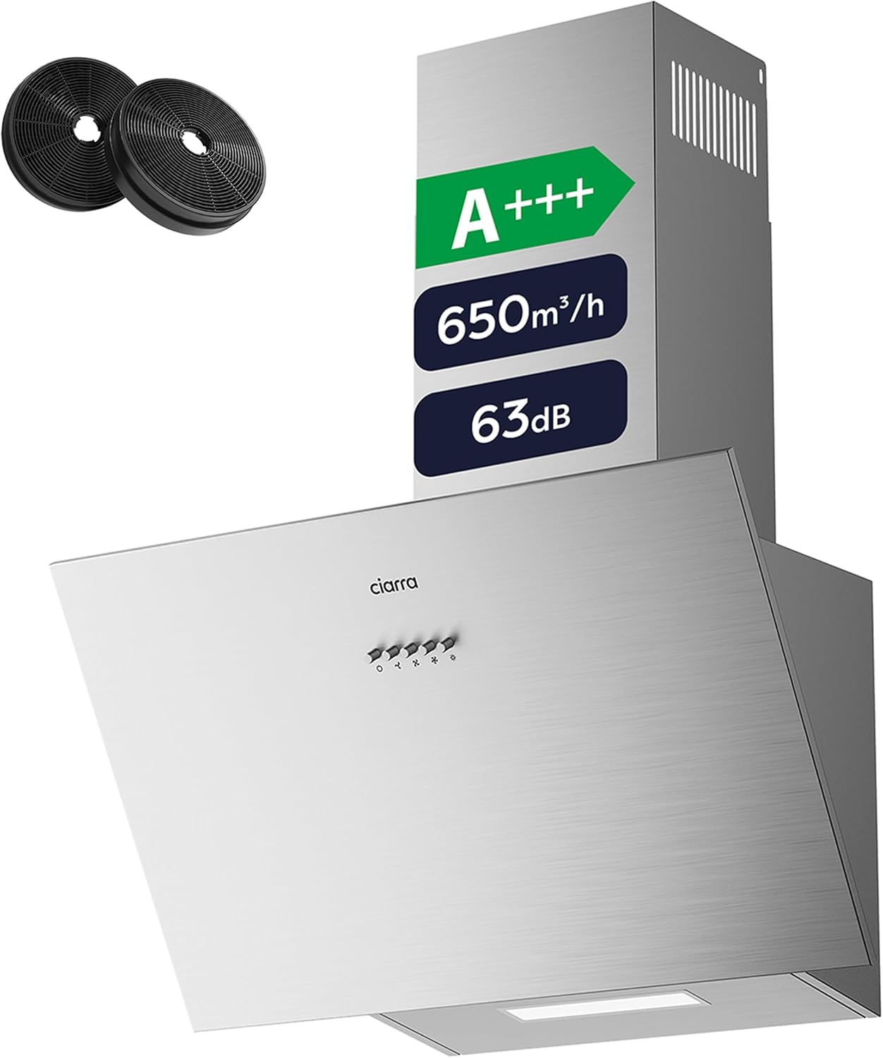 - CIARRA CBCB6736C A++ Dunstabzugshaube (60 cm) Schräghaube, Umluft/Abluft bis 350 m³/h