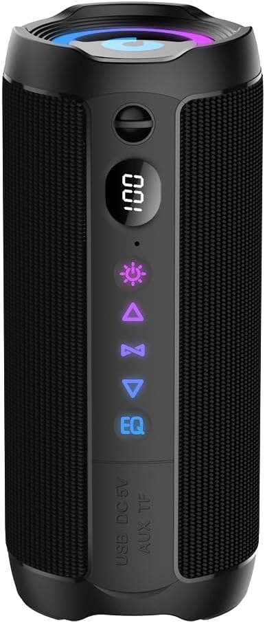 - Bluetooth Lautsprecher Musikbox Bluetooth 5.4 mit RGB-Lichtern, IPX7 & 20h Akku (Freisprechfunktion) – Schwarz