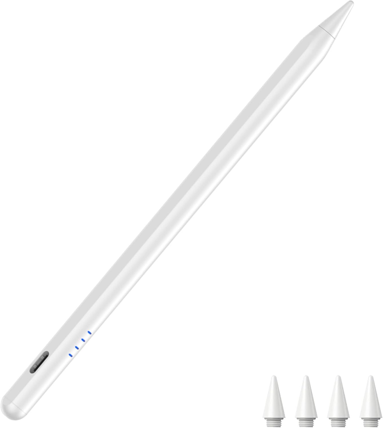 Für die Nutzung im Alltag kommt außerdem die magnetische Adsorption (zur Aufbewahrung bzw. zum Anhaften an kompatiblen magnetischen iPad-Bereichen) hinzu. Im Handling soll der Stift ohne Bluetooth auskommen: Aktivieren/Bedienen wird über „zwei Fingertipps“ auf der Oberseite beschrieben. Und wenn du gern auf Akku-Anzeichen achtest: Es gibt laut Angabe vier Statusleuchten, mit denen sich der Ladezustand in Bereiche einordnen lässt. Je nach Bedarf lädt der Stift über Type-C.