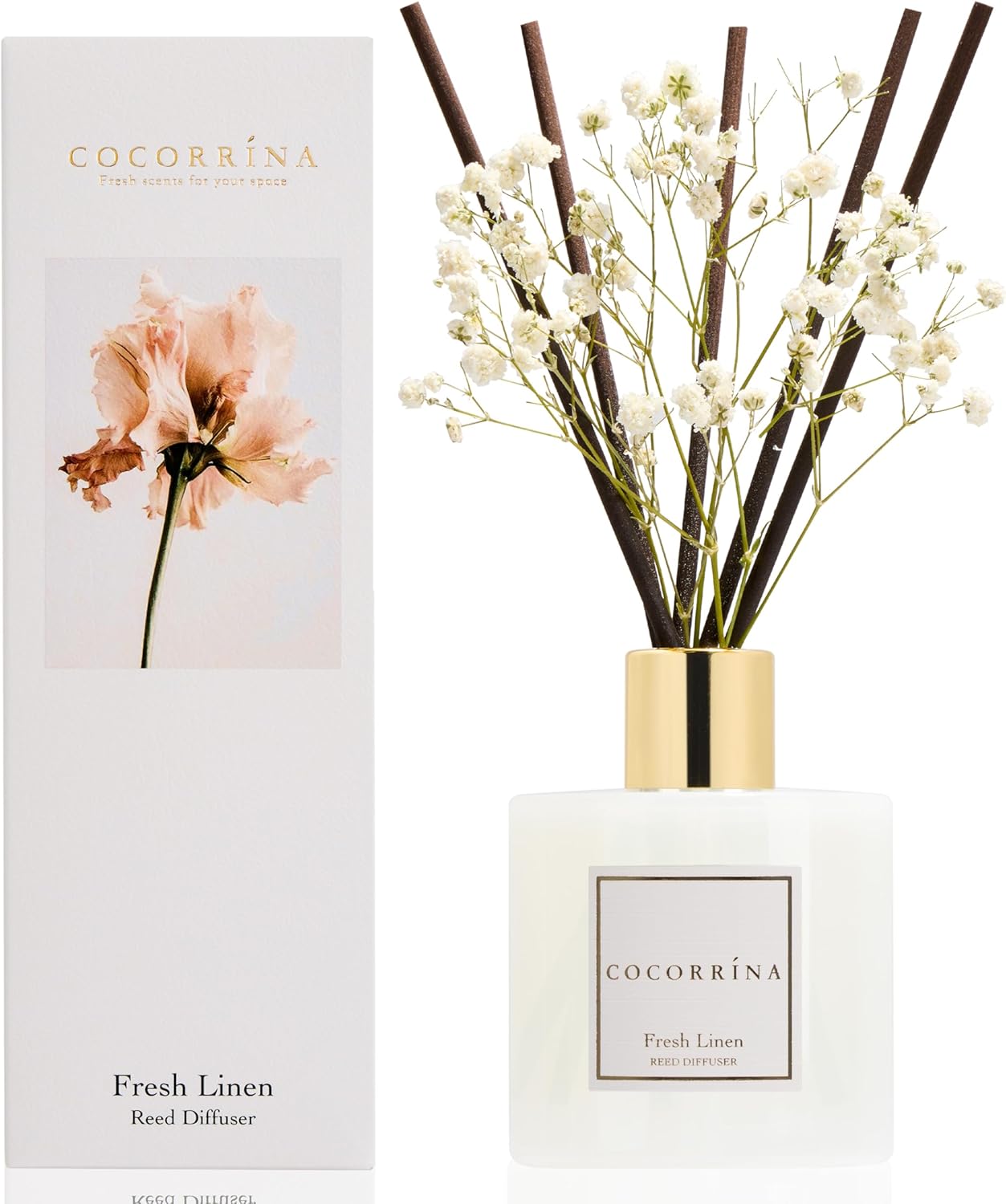 COCORRÍNA Raumduft Reed Diffuser Fresh Linen mit 8 Duftstäbchen (200 ml) – langanhaltender Duft für Zuhause & Bad