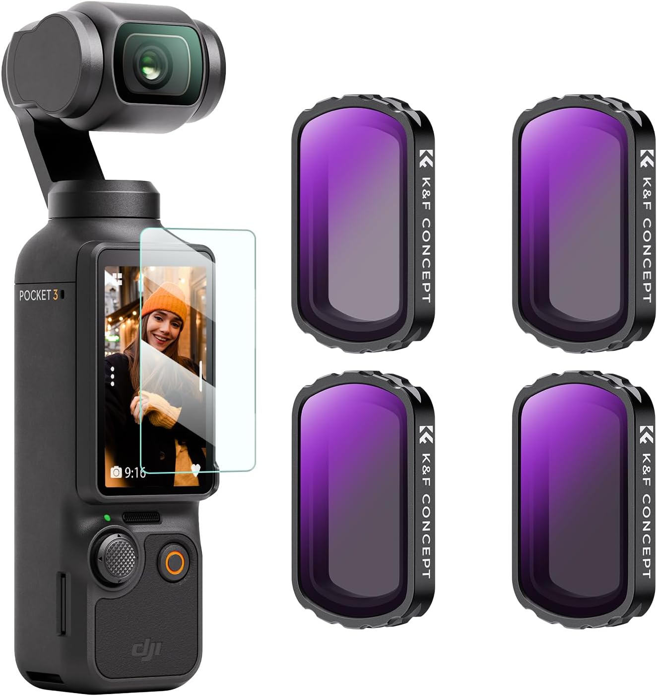 K&F CONCEPT magnetisches ND-Filter-Set für DJI Osmo Pocket 3 (ND4/ND8/ND16/ND32) – 4er Pack im Aluminiumrahmen