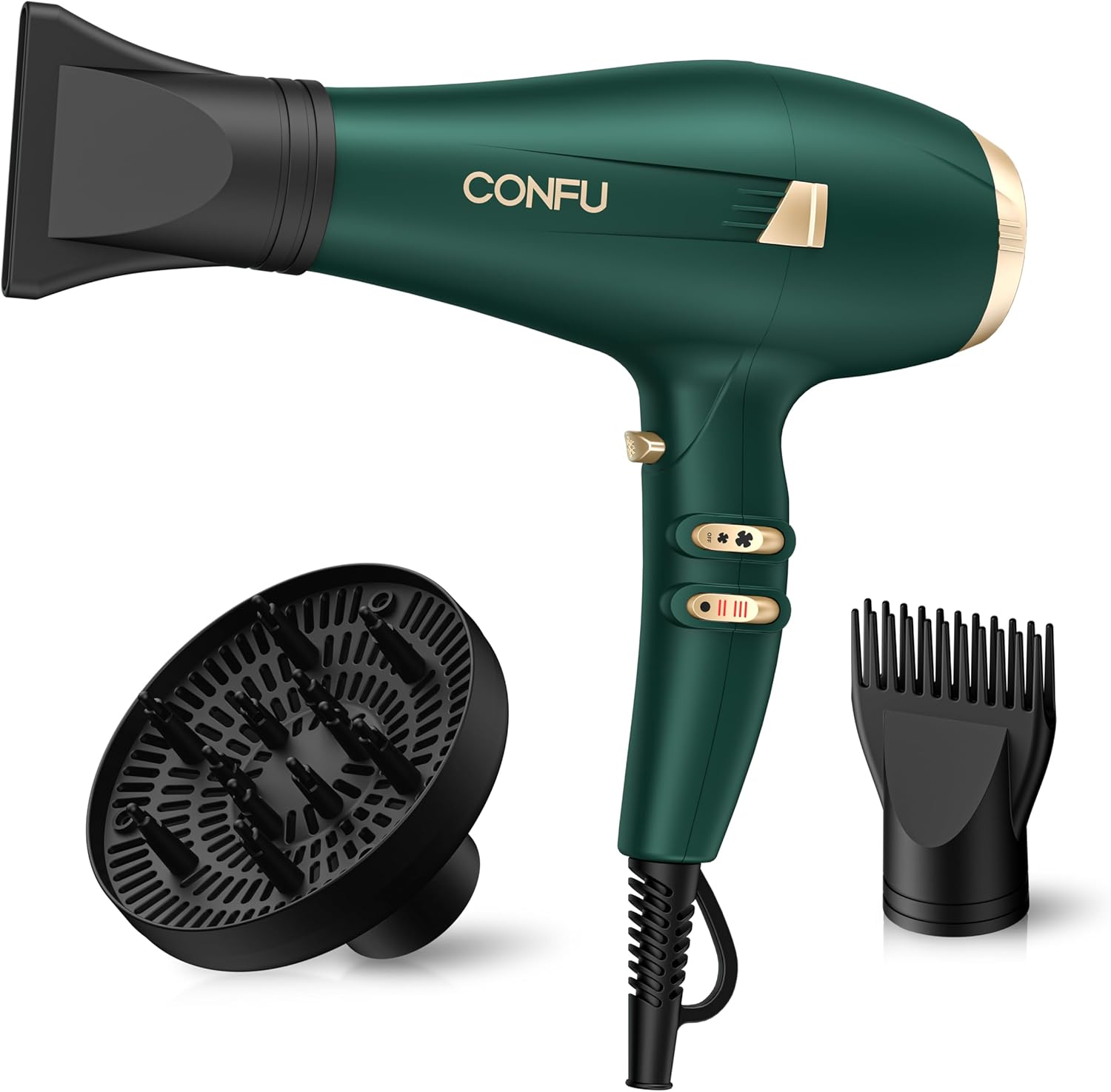 CONFU Profi Föhn Ionen-Haartrockner 2400 W mit Diffusor und Styling-Düse, 2 Geschwindigkeiten & 3 Heizstufen (grün)