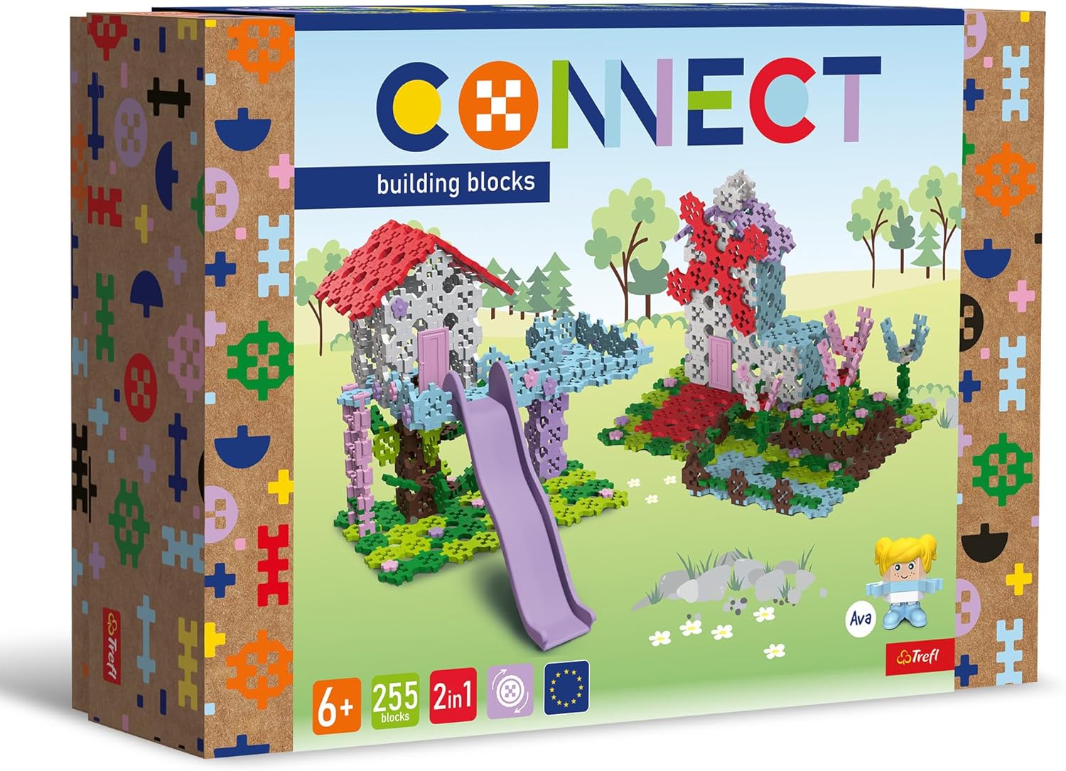 Connect Trefl Bausteine 2in1 Set Baumhaus/Windmühle – 255 Elemente mit Figur „Ava“