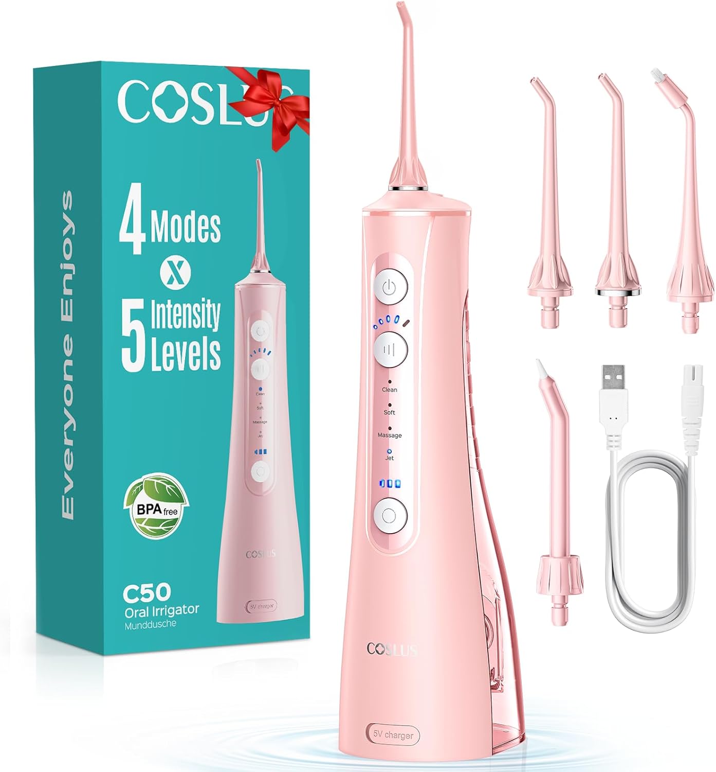 Die COSLUS C50 ist eine kabellose elektrische Munddusche (Water Flosser) für die tägliche Reinigung zwischen den Zähnen. Im Fokus stehen laut Hersteller vor allem Interdentalreinigung, die Pflege von Zahnfleisch sowie ein Setup, das auch bei empfindlichen Bereichen oder bei festen Zahnspangen genutzt werden kann. Praktisch ist dabei der Ansatz: Du bekommst mehrere Reinigungsmodi und verschiedene Intensitätsstufen, sodass sich die Anwendung eher an dein Zahnfleischgefühl anpassen lässt.