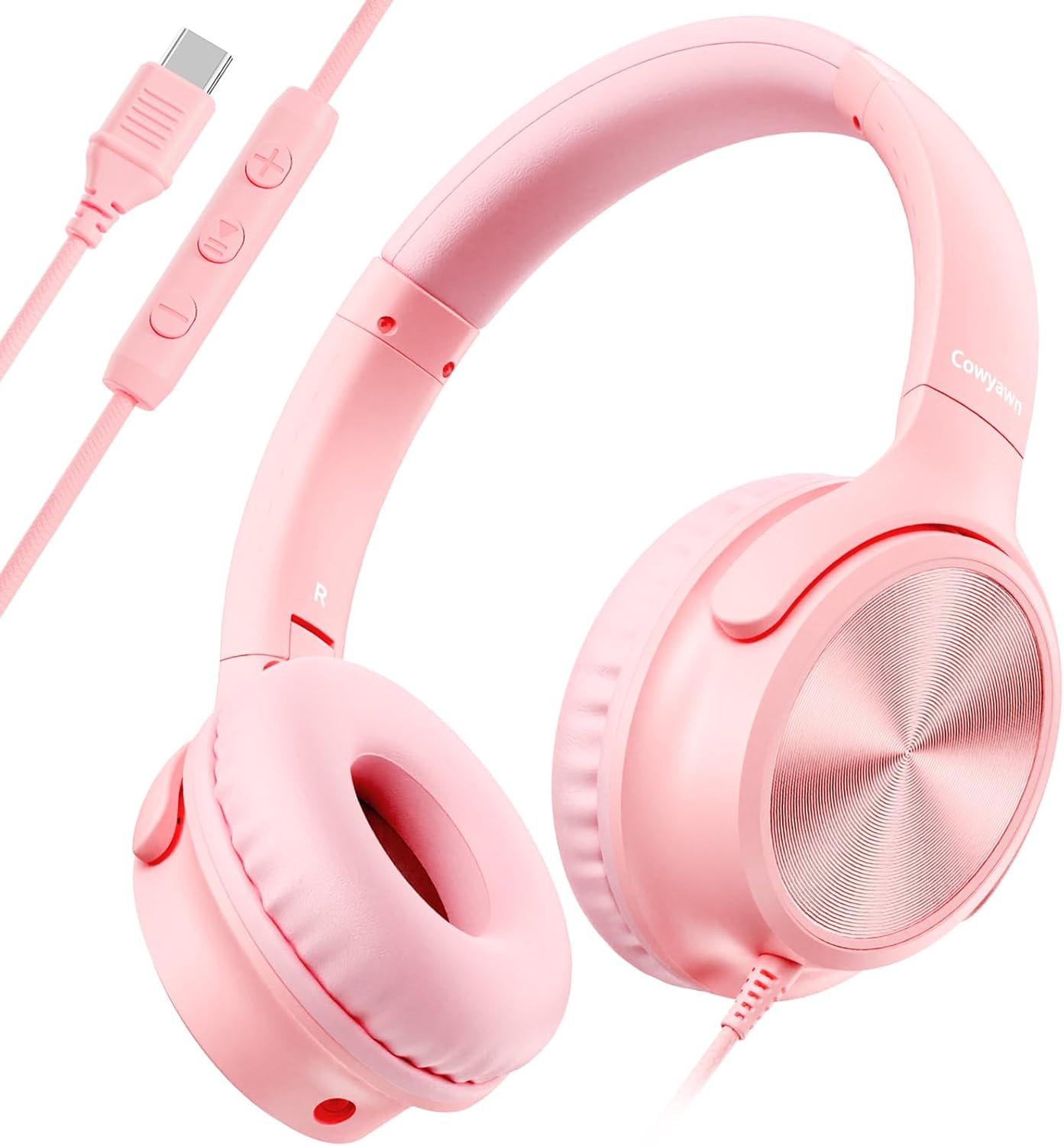 Cowyawn USB-C-kabelgebundene Over-Ear-Kopfhörer mit Mikrofon, Lautstärkeregler und Faltdesign (rosa)