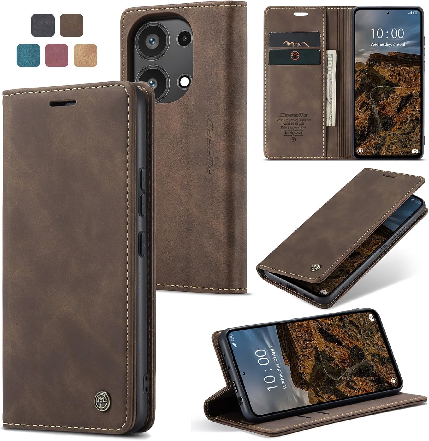 - Cracedily Handyhülle für Xiaomi 14T – Klapp-Flip-Case mit Kartenfach, Magnetverschluss & Standfunktion (Kaffee)