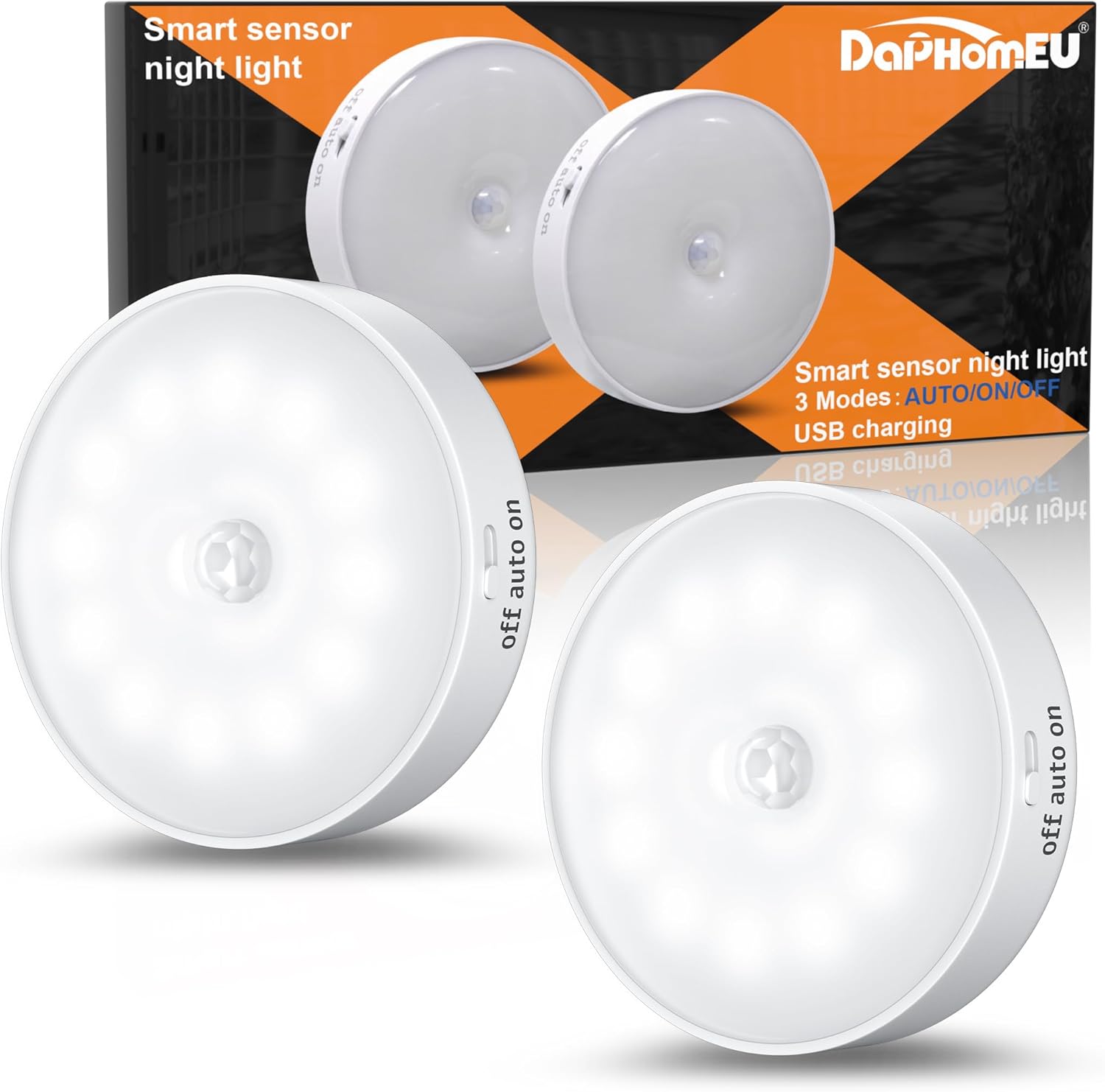 daphomeu 2er-Set Nachtlicht mit Bewegungsmelder (USB wiederaufladbar, kaltweiß) für innen