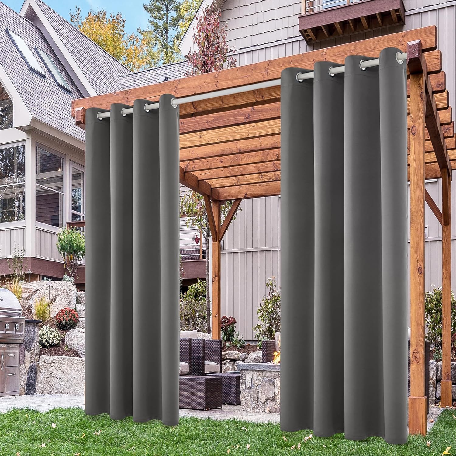 Deconovo Blickdichte Outdoor-Vorhänge 270x140 cm (2er-Set) – wetterfest & sonnendämpfend, grau