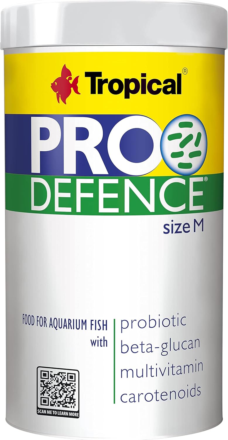 PRO Defence Size M ist ein langsam sinkendes Granulat-Futter, das auf eine tägliche Ernährung von Aquarienfischen mit Probiotika ausgelegt ist. Das Konzept dahinter: Probiotika sollen zusammen mit weiteren zugesetzten Stoffen (genannt werden Beta-Glucan, Vitamine und Carotinoide) den allgemeinen Zustand der Fische unterstützen und das Immunsystem stärken.