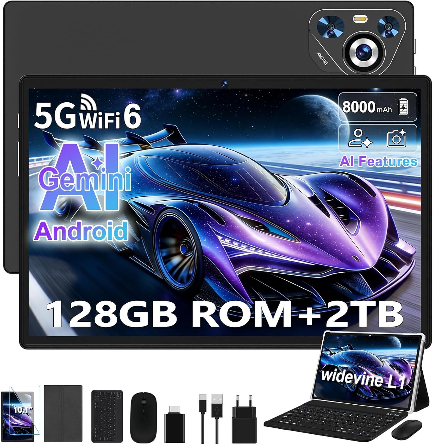 Das Tablet von Dghrti 2026 ist für Nutzer ausgelegt, die ein 10,1 Zoll Android Gerät flexibel für Spiele, Büroautomatisierung und Audio verwenden möchten. Mit 128 GB ROM und der Möglichkeit, den Speicher zusätzlich zu erweitern, bleibt genug Platz für Apps und Dateien. Laut Hersteller unterstützt das System die UFS 2.1 Technologie, um die Download-Geschwindigkeit zu erhöhen, was im Alltag spürbar sein kann. Für die Steuerung wird nicht nur das Tablet selbst genutzt, sondern du erhältst auch Tastatur und Maus, wodurch sich das Gerät wie ein kleines Arbeitsgerät konfigurieren lässt. 🔋