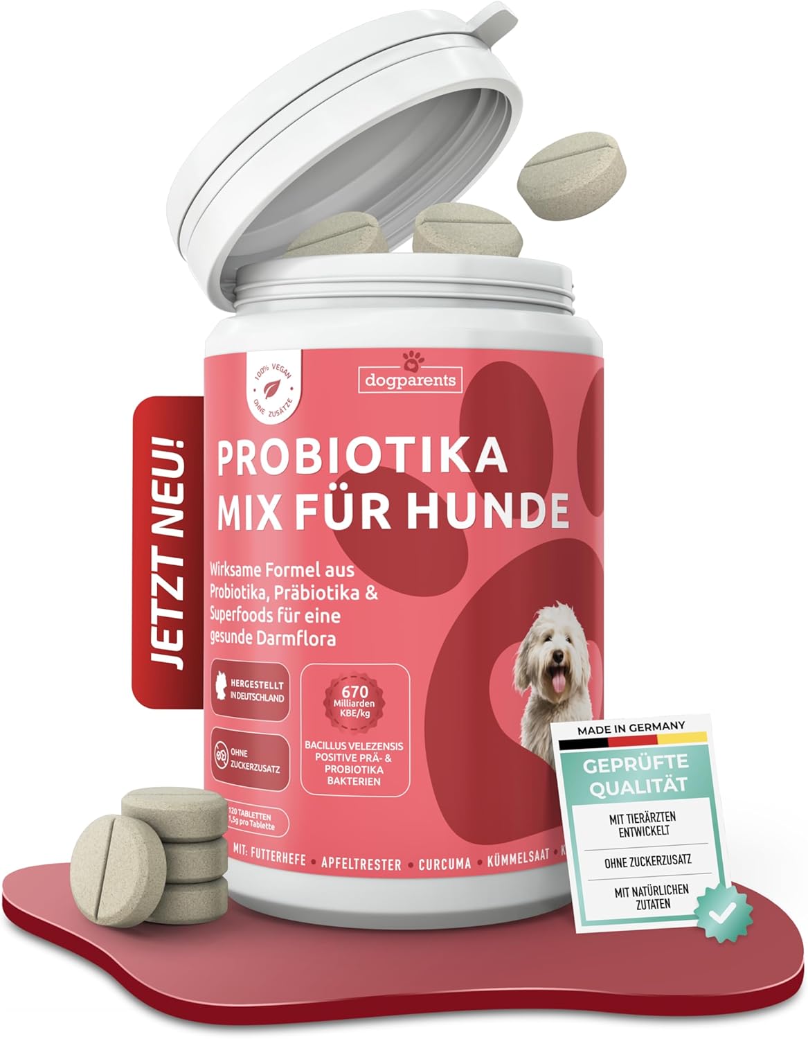 Die Tabletten sind geschmacksfreundlich und lassen sich einfach ins Futter mischen oder als Leckerli geben. DOGPARENTS Prä & Probiotika Hund liefert laut Hersteller eine hochdosierte Menge von 670 Milliarden KBE pro kg, der stabile Sporenstamm Bacillus velezensis erreicht den Darm lebend, so dass die Bakterien ihre Wirkung entfalten können. Ten en cuenta que die Wirkung kann je nach individuellem Gesundheitszustand variieren.