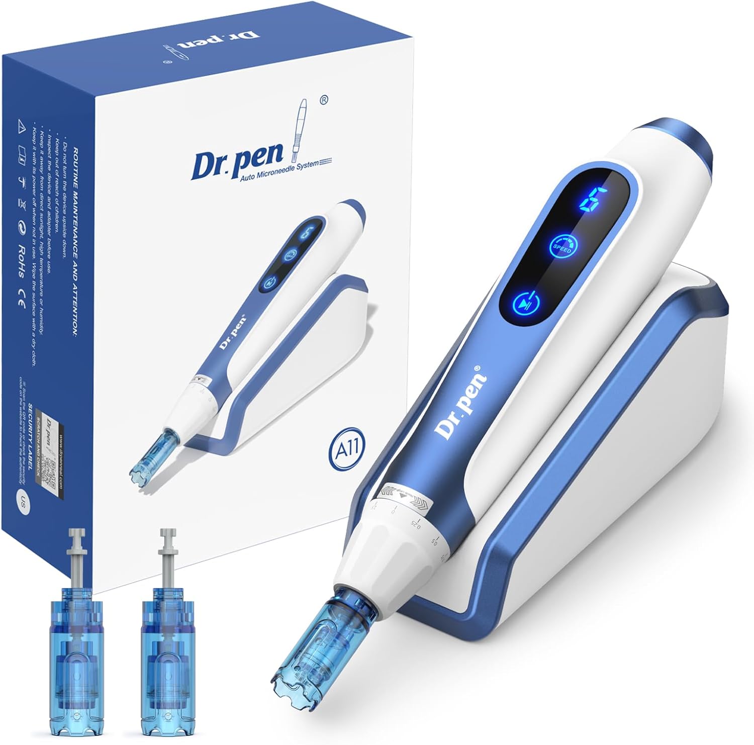 Dr. Pen A11 Microneedling Pen – kabelloses Induktionsgerät mit 6 Geschwindigkeiten & 18-Nadel-Patrone (2 Patronen)