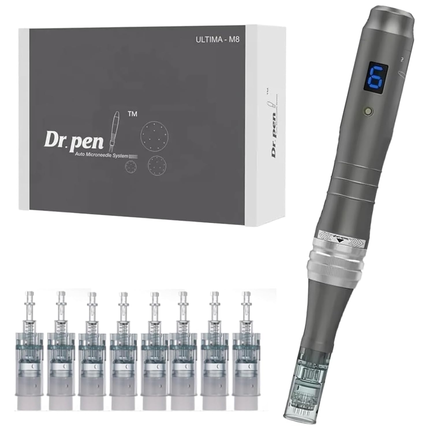 Dr. pen M8 Microneedling Stift – Home-Profi zur Hautpflege mit 8 sterilen Patronen, 6 Intensitätsstufen und 0–2,5 mm