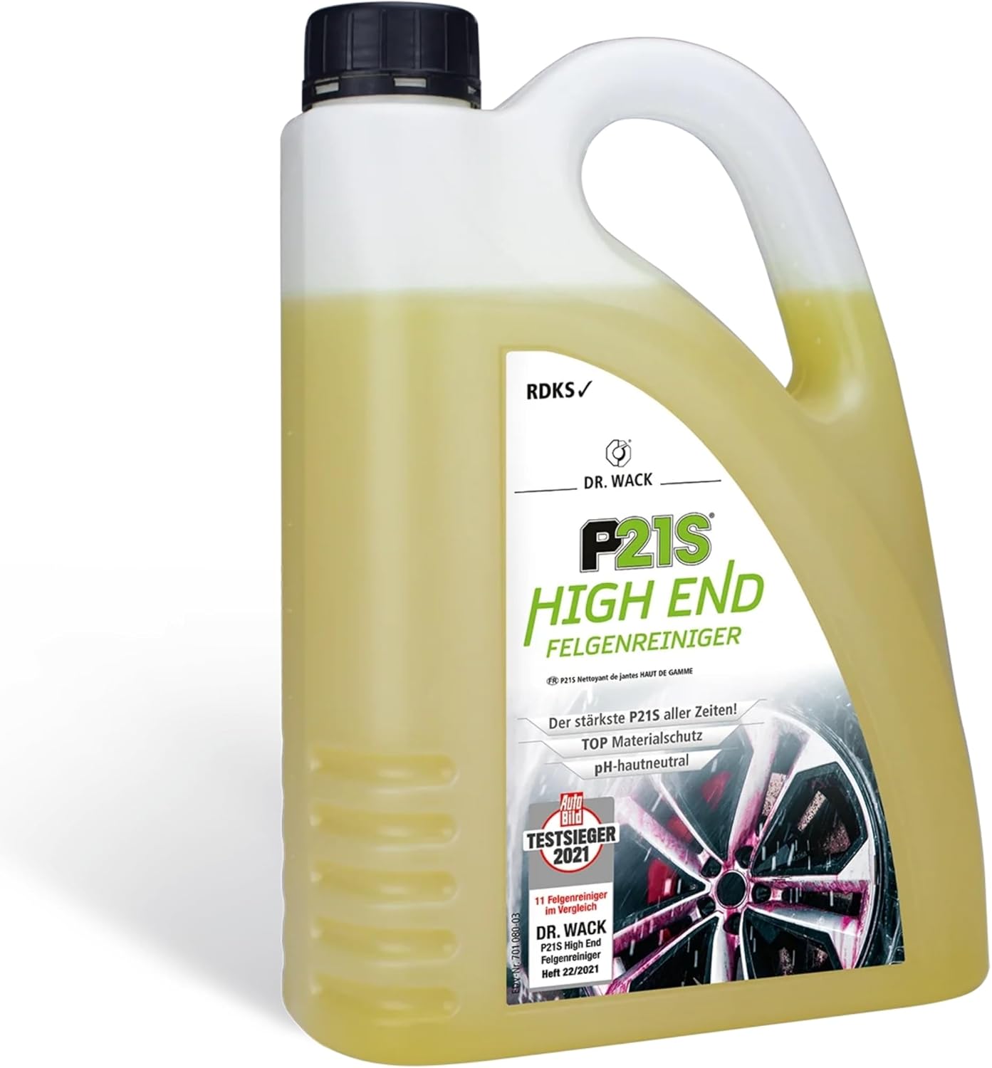 Der DR. WACK P21S HIGH END Felgenreiniger kommt in einer 2-Liter-Flasche und richtet sich an Autobesitzer, die Felgen effizient reinigen möchten, ohne die Haut zu belasten. Auf dem Papier kombiniert er starke Reinigungsleistung mit einer Gel-Formel, die an der Felge haften bleibt, sowie einem Wirkundikator, der den Reinigungsprozess sichtbar macht.