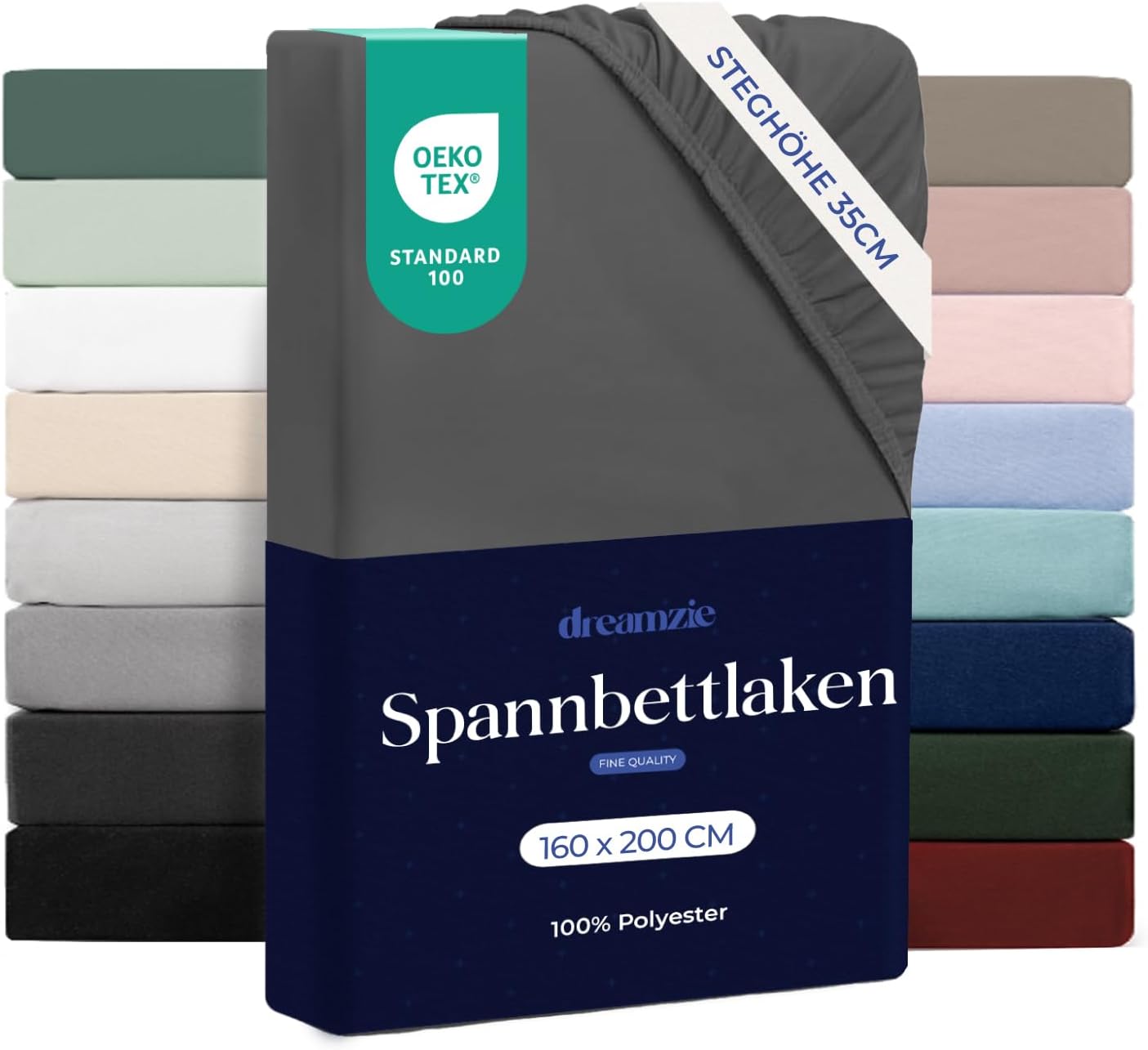 Dreamzie Spannbettlaken 160x200 cm aus Mikrofaser – dunkelgrau, 33 cm tiefes Spannteil