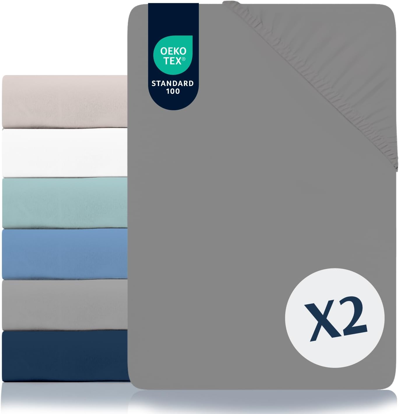 Das Dreamzie Spannbettlaken (2‑er Pack) richtet sich an alle, die ein passend großes Laken für Matratzen im Bereich 90x190/200 cm suchen. Du bekommst zwei Laken in Anthrazit aus 100% Polyester‑Mikrofaser mit OEKO‑TEX Standard 100 Zertifizierung. Auf dem Papier punktet es besonders durch eine schnelle Montage: große Saum-/Umfassungszonen plus eine elastische Eckbefestigung („Easy‑On“) sollen das Beziehen ohne sichtbare Falten erleichtern.