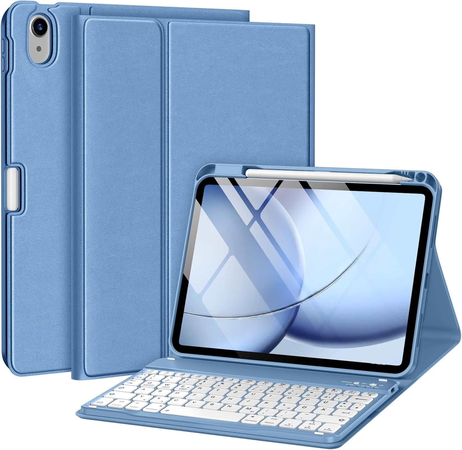drivego Tastatur-Hülle für iPad 11./10. Generation (A16, 11. Generation 2025 / 10. Generation 2022) – magnetisch, QWERTZ, blau