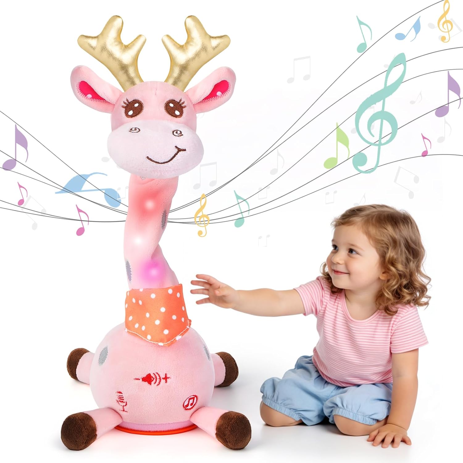 Edencomer Sprechende Giraffe Kuscheltier (Singend, Tanzend) mit Lautstärkeregler – rosa