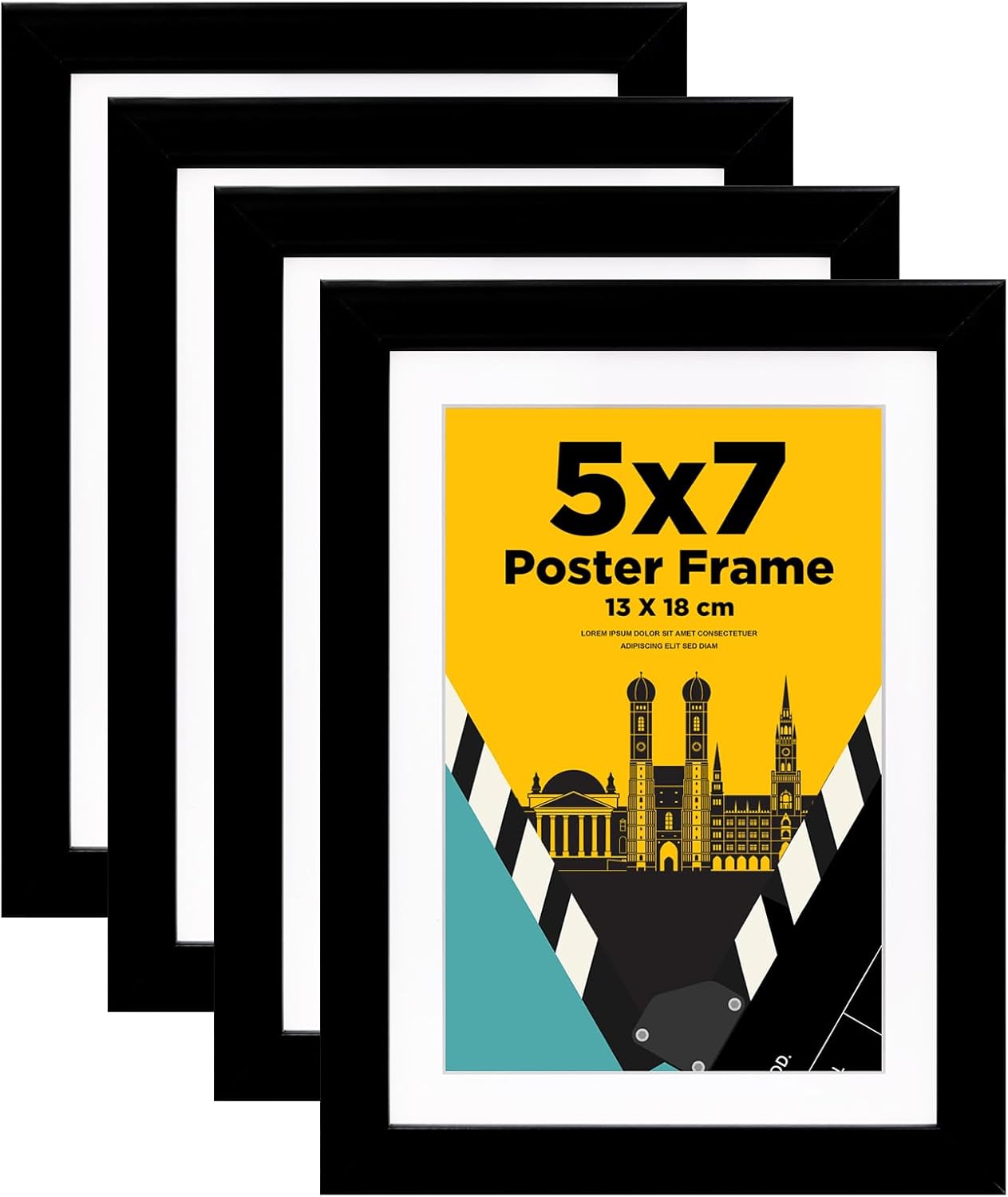 Das Set kommt als 4er-Set, was besonders dann Sinn ergibt, wenn du mehrere Motive in einem einheitlichen Look aufhängen oder hinstellen willst – z. B. im Büro, im Flur oder im Wohnzimmer. Der Rahmen arbeitet mit einem Acrylglas anstelle von normalem Glas, was laut Beschreibung leichter und schlagfester sein soll.