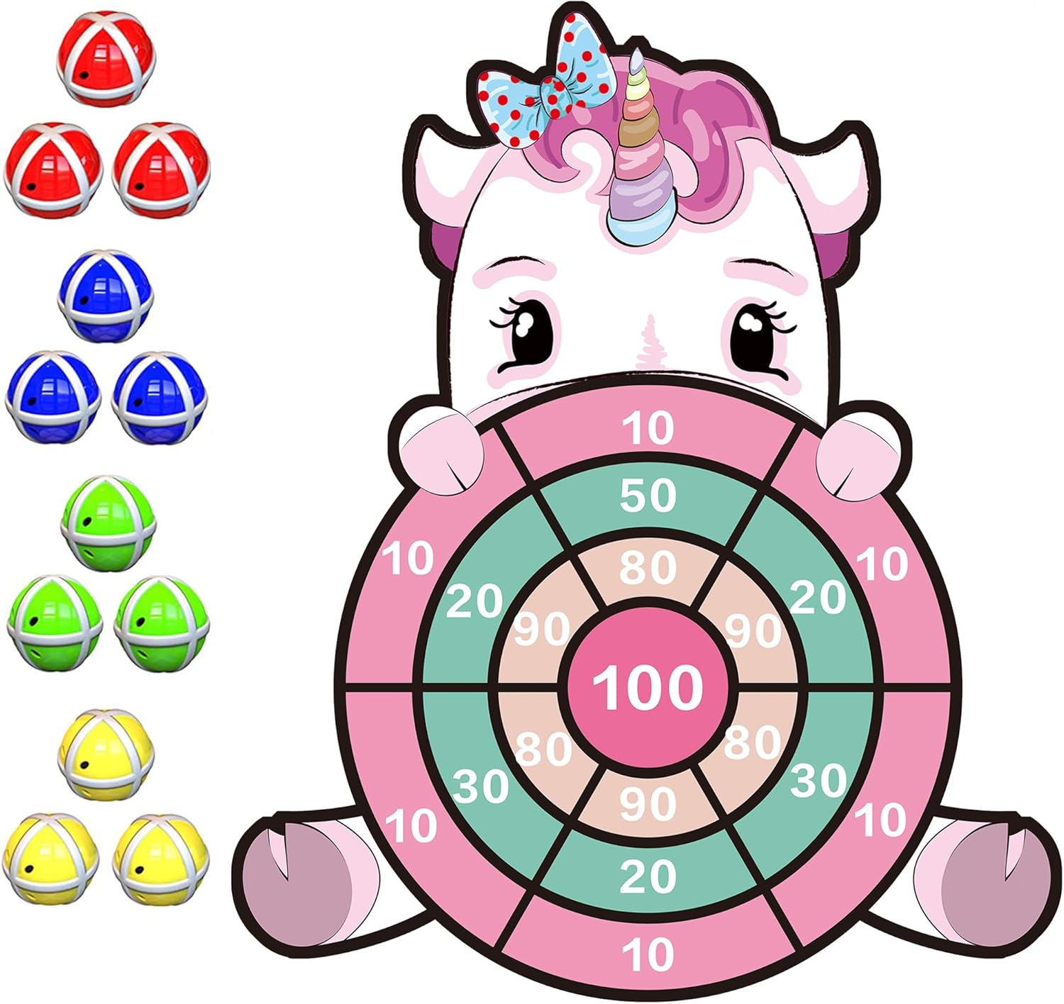 - Einhorn Dartscheibe Kinder – 63 cm Wurfspiel mit 12 Klebebällen, für Mädchen ab 3 Jahren