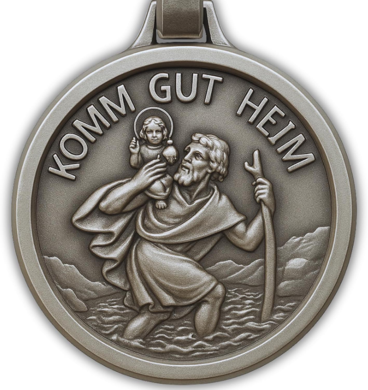 Er ist beides in einem: Als Schlüsselanhänger ist er praktisch (am Schlüsselbund sichtbar und griffbereit), als Christophorus-Motiv ist er zugleich symbolisch gedacht. Eine technische Schutzfunktion ist damit nicht gemeint.