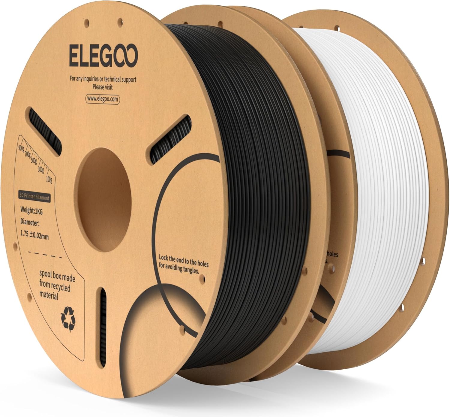 ELEGOO PLA Filament 1,75 mm Schwarz/Weiß (2 kg) – Maßgenauigkeit ± 0,02 mm auf Pappspule