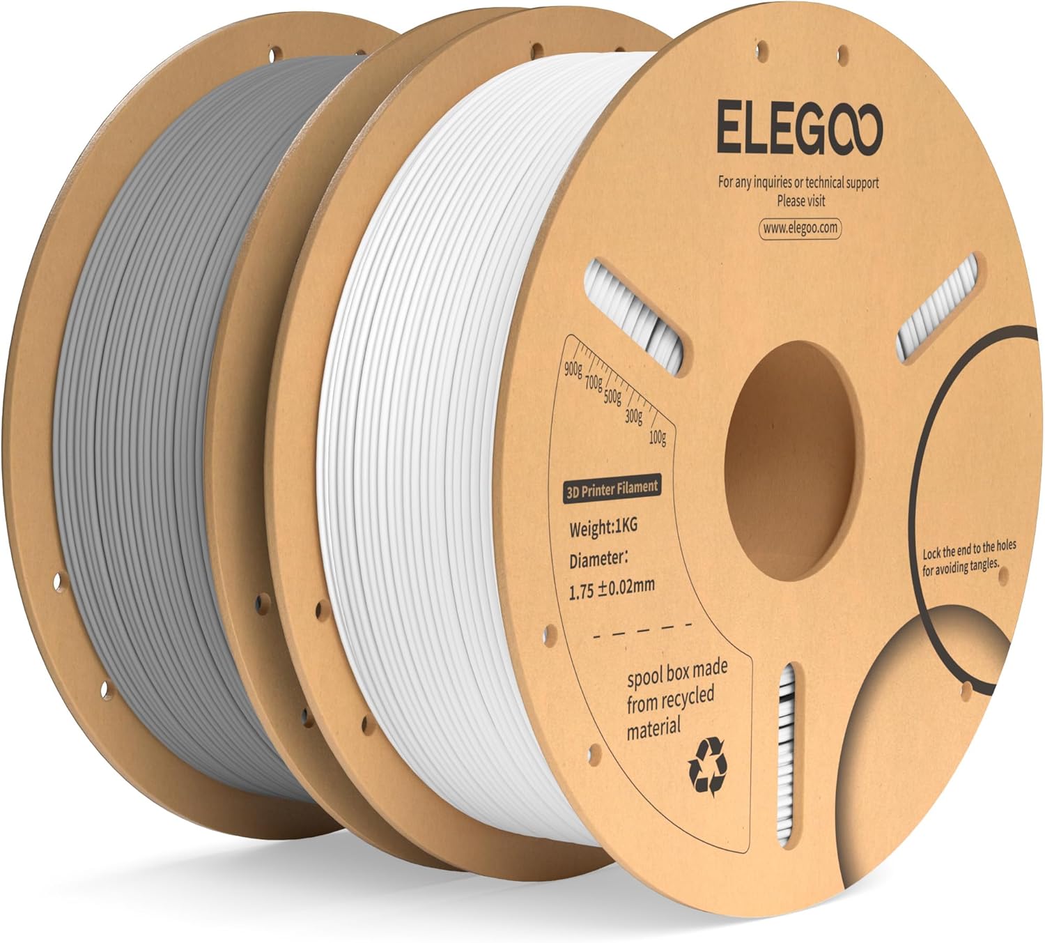 ELEGOO PLA+ Filament 1,75 mm Weiß/Grau (2 kg) – präzises 3D-Druckmaterial für stabilere Ergebnisse