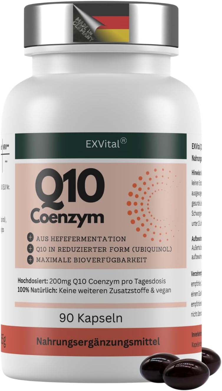 EXVital® Q10 Coenzym Ubiquinol ist ein Nahrungsergänzungsmittel in veganen Kapseln mit 200 mg Q10 pro Kapsel. Laut Hersteller ist es in liposomaler Form angeboten und zielt auf eine möglichst gute Verfügbarkeit ab. Wenn du Q10 gezielt als Tagesroutine einbauen willst, ist die Idee recht übersichtlich: 1 Kapsel täglich, mit einem Vorrat für rund 3 Monate.