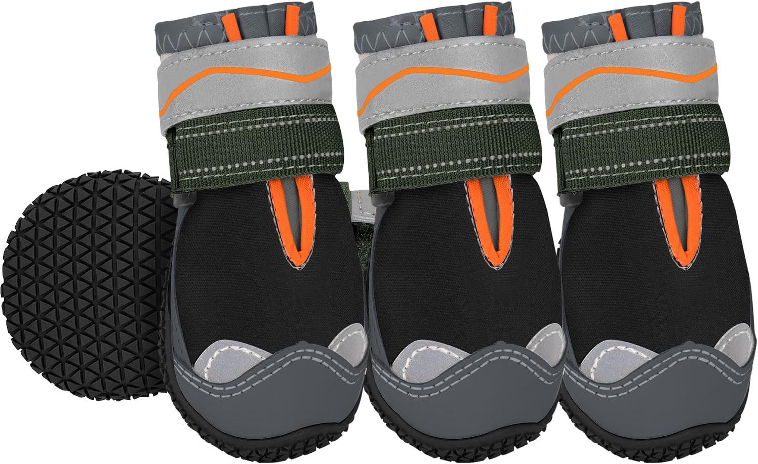 - SlowTon Hundeschuhe Pfotenschutz (4 Stück) – atmungsaktiv, rutschfeste Sohle, verstellbarer reflektierender Klettverschluss