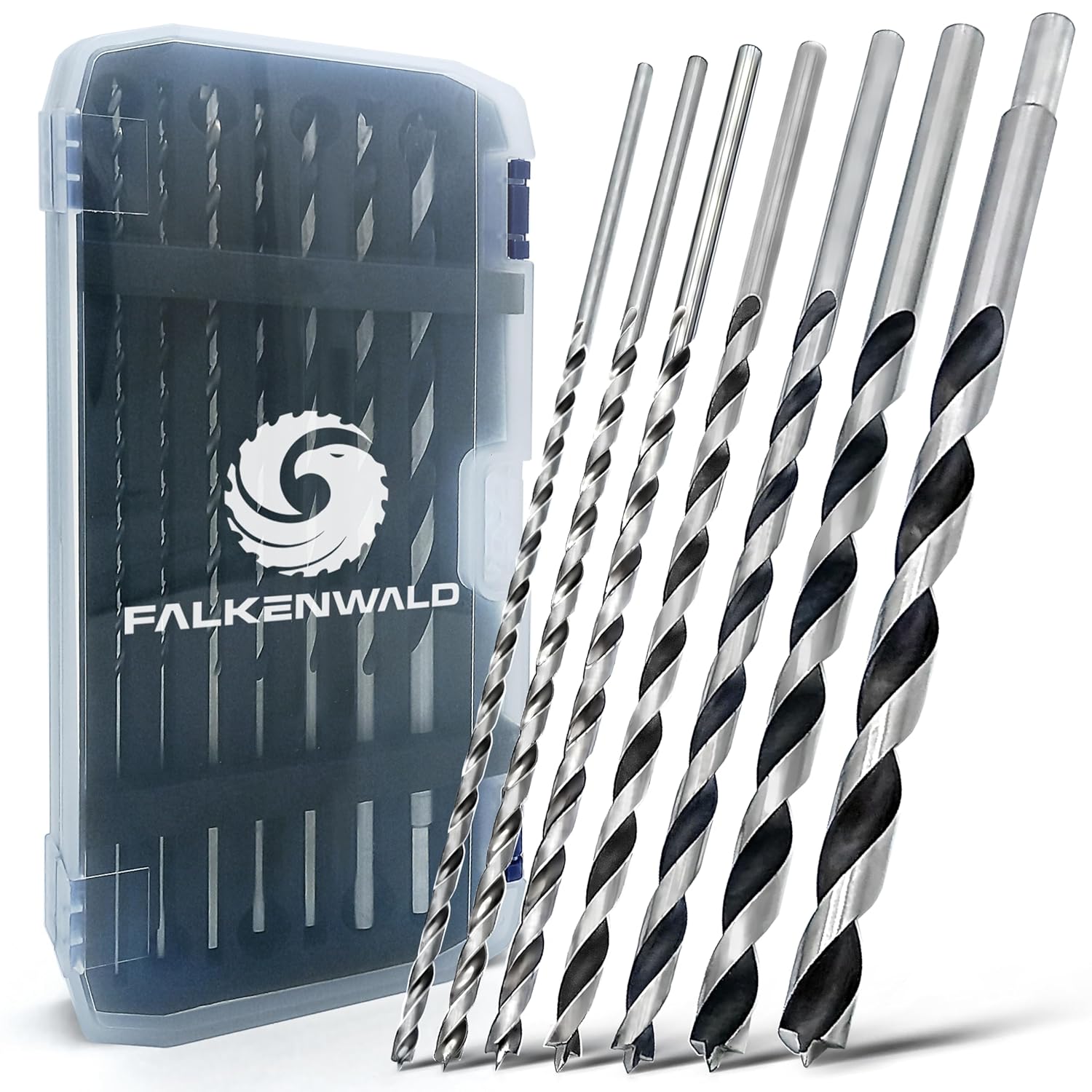 Falkenwald Holzbohrer-Set lang 7-teilig (4–12 mm) inkl. Koffer für präzise Bohrungen in Weich- und Hartholz