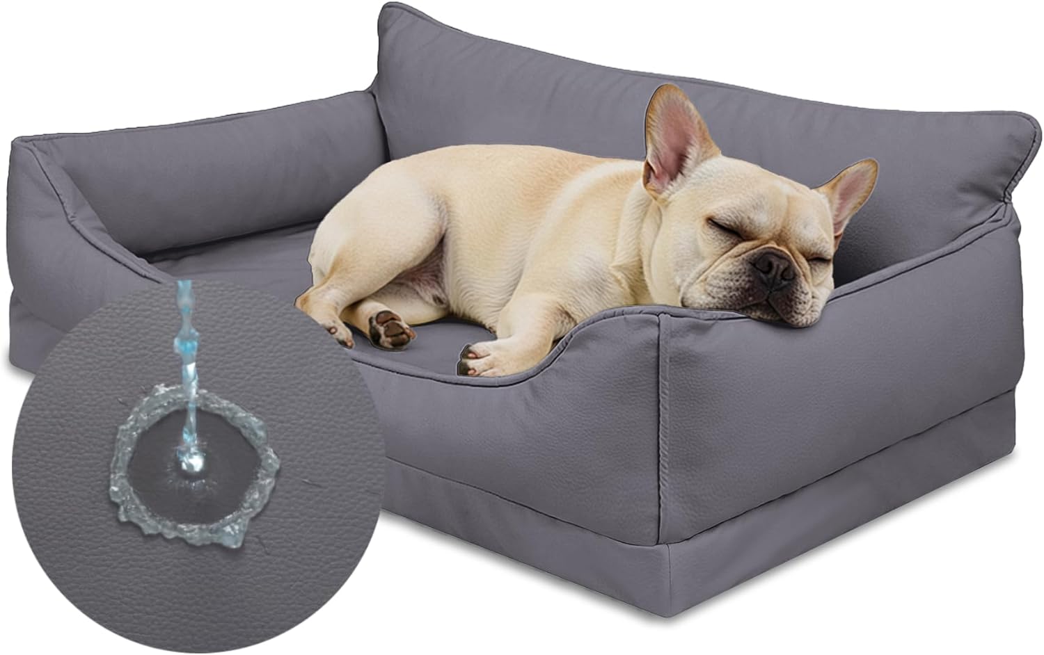 - Favodormir orthopädisches Hundebett für große Hunde (104 x 68 cm) mit abnehmbarer, wasserabweisender Kunstleder-Hülle – grau