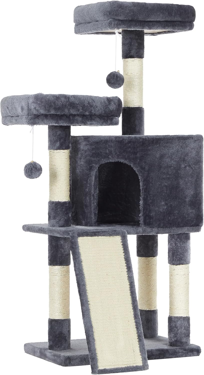 - Amazon Basics mehrstöckiger Kletterturm für Katzen und Kätzchen (76,2 cm) mit Kratzstämmen, Katzenhaus und Hängematte – grau