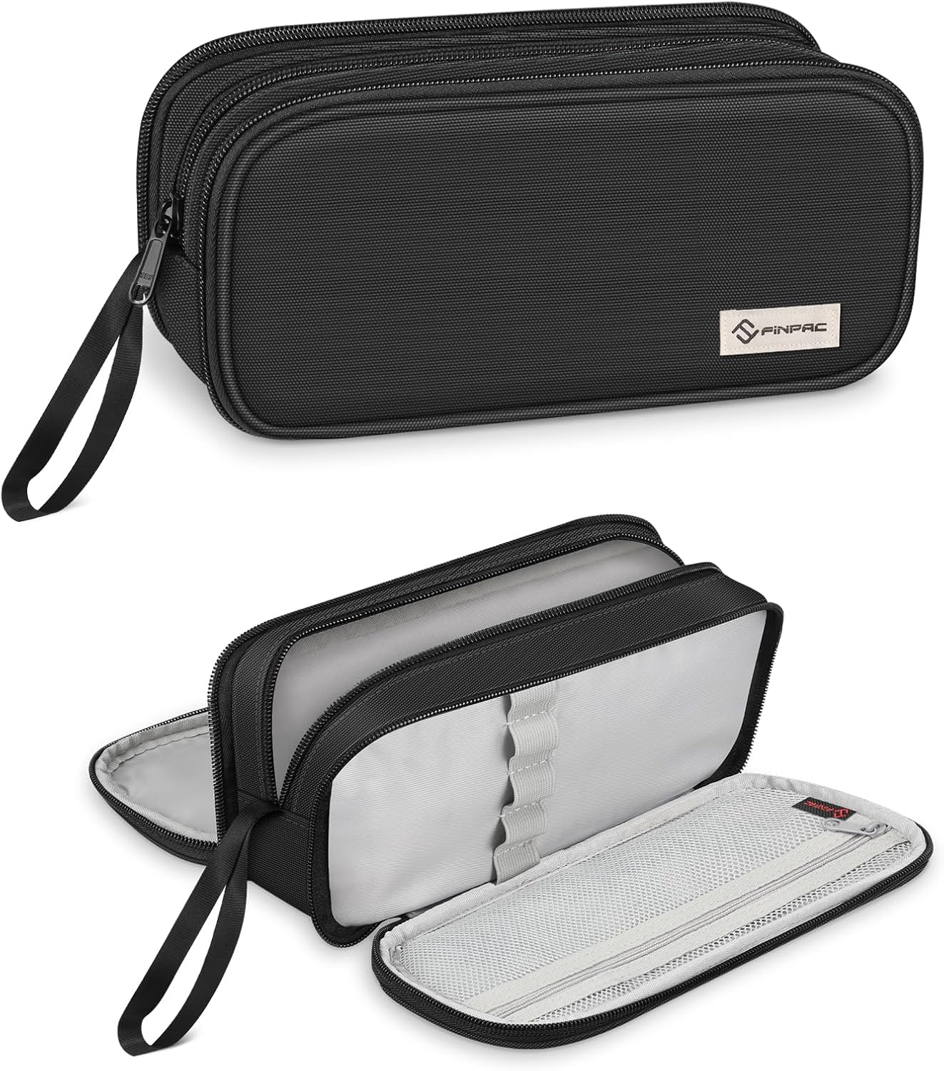 FINPAC Federmäppchen Federtasche mit 3 Fächern – große Kapazität für Schule & Büro (Schwarz)