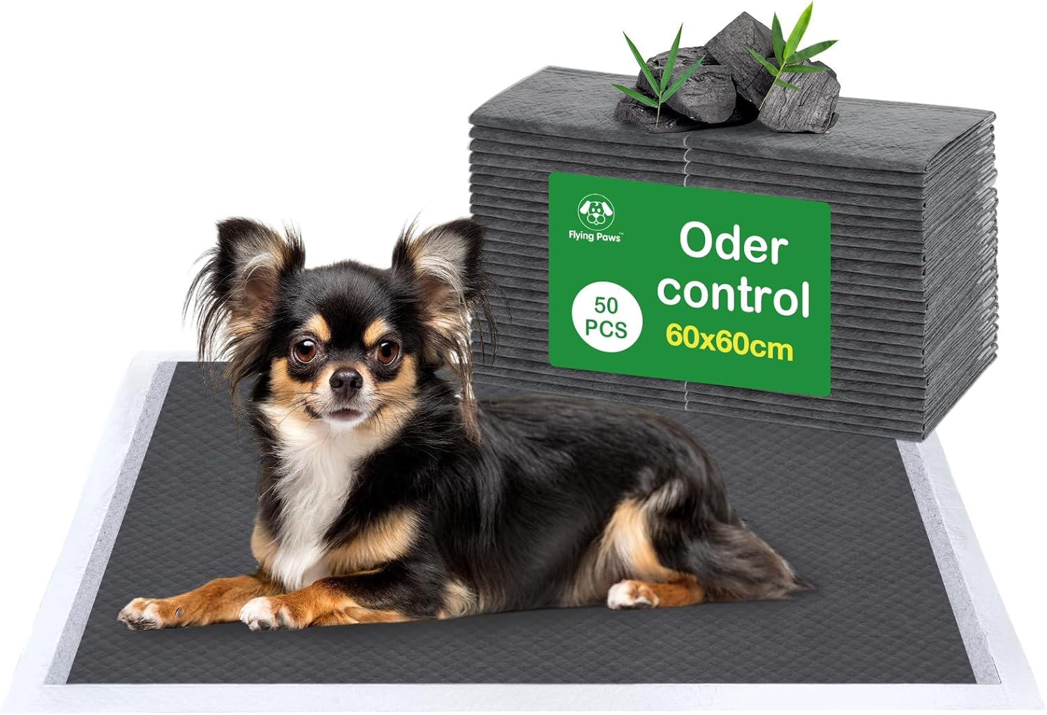 Flying Paws Trainingsunterlagen Einweg-Welpenunterlagen mit Aktivkohle, 60×60 cm (L, 50 Stück)
