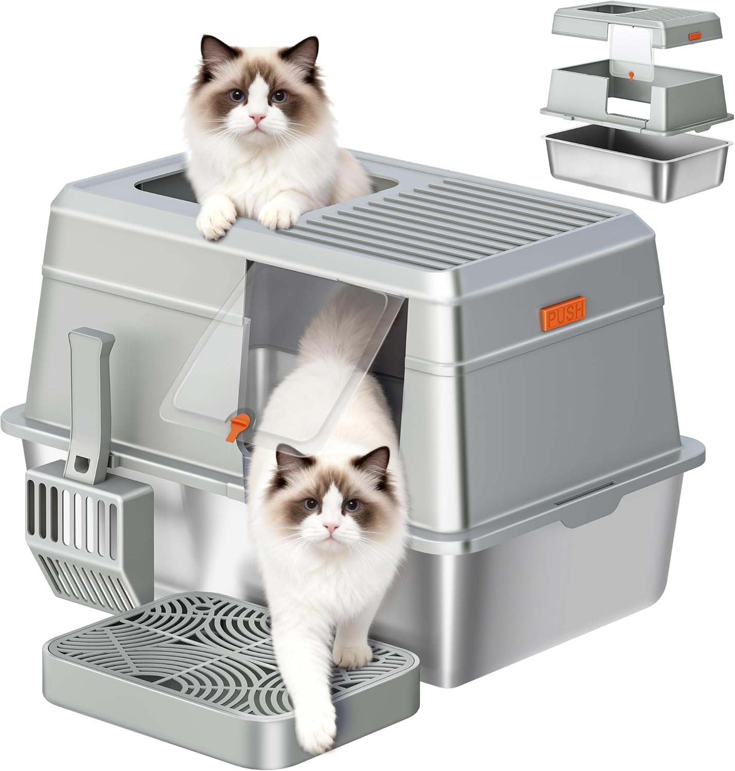 - Name: Fobyfurny Katzenklo Edelstahl mit Deckel (XL, geschlossen)