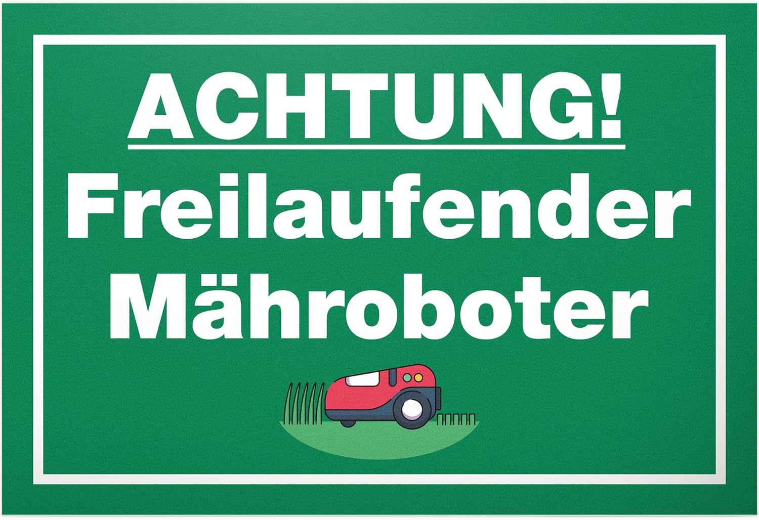 Freilaufender Mähroboter-Gartenschild von DankeDir! (30 × 20 cm) – wetterfestes Warnschild für Rasenmähroboter