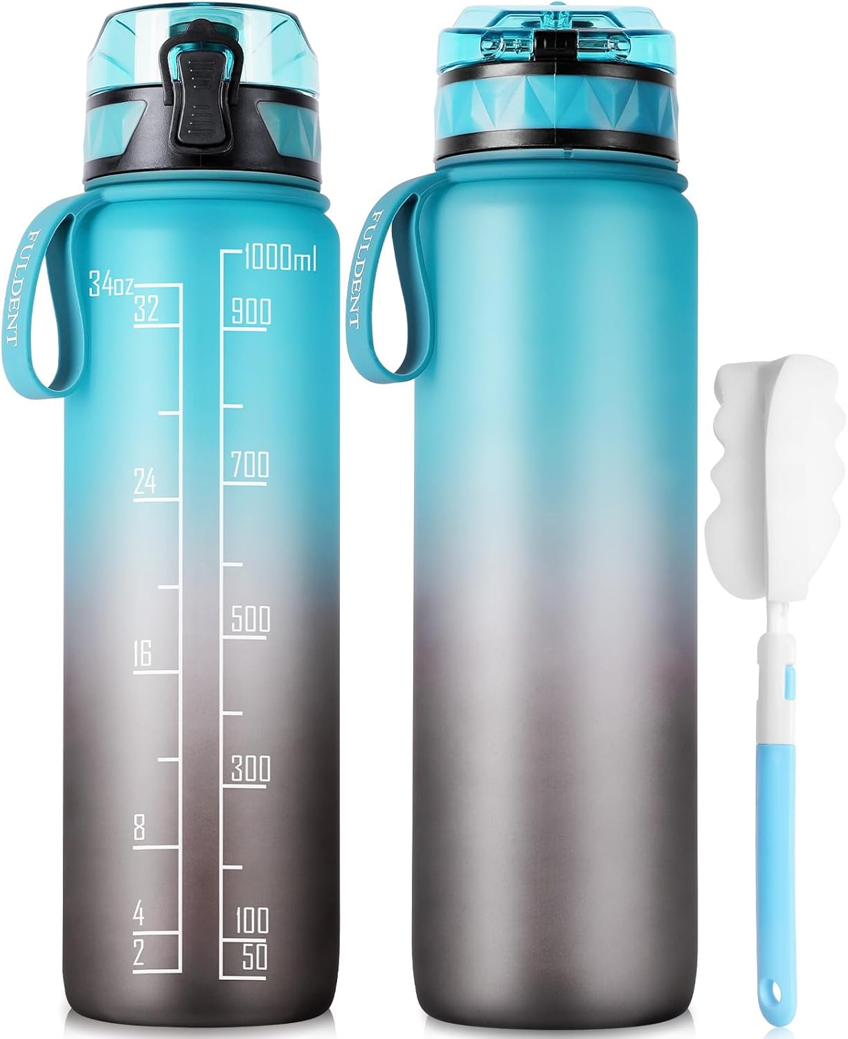 FULDENT Trinkflasche 1L Sport-Wasserflasche mit rutschfestem Gummi-Grip (BPA-frei) für Fahrrad, Outdoor, Schule & Gym