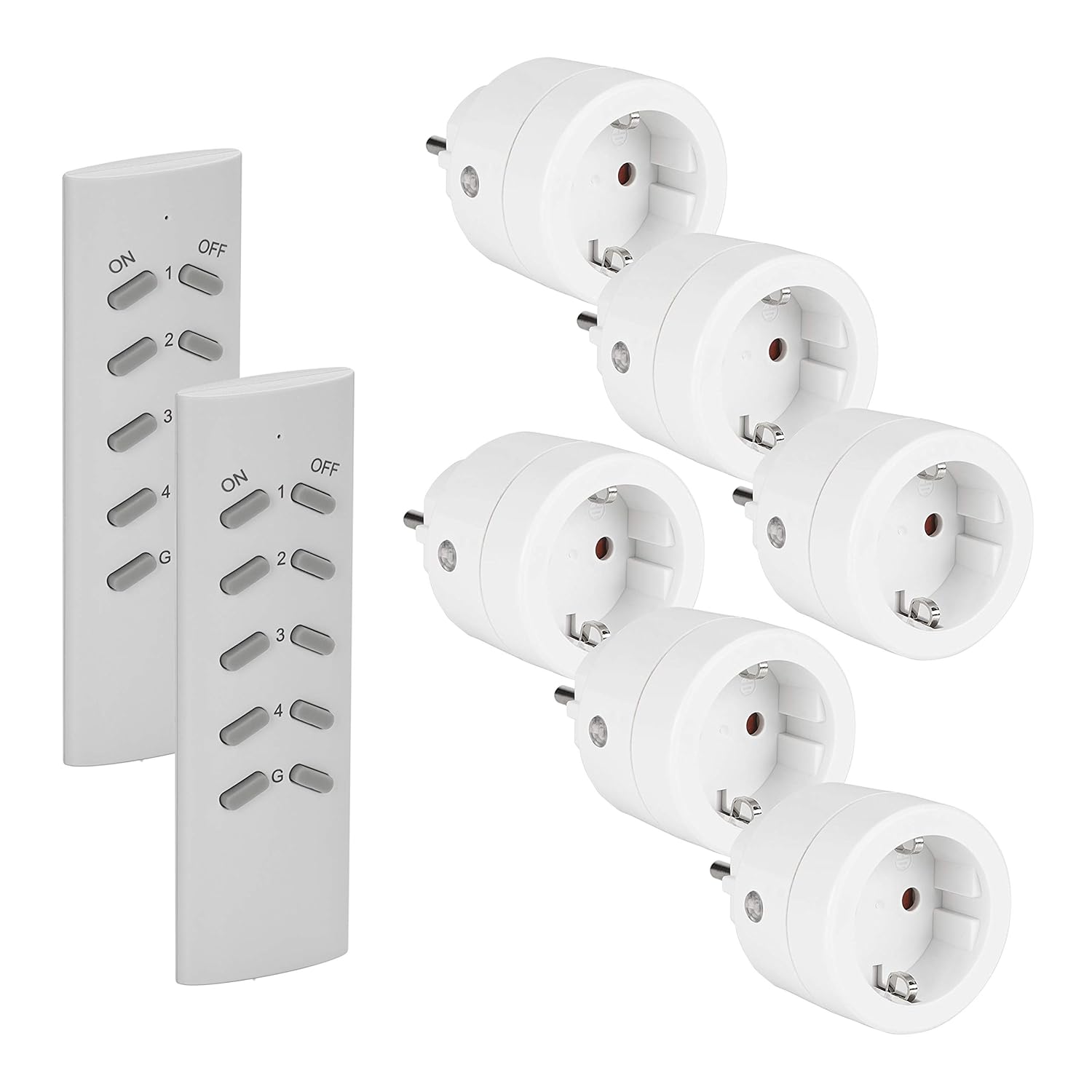 Mit Blick auf die Bedienung ist das Set recht flexibel: Es werden zwei Fernbedienungen mitgeliefert, die laut Beschreibung sogar denselben Netzstecker gemeinsam schalten können. Überdies ist eine gemeinsame Steuerung möglich, wenn mehrere Empfänger mit einer Taste verbunden werden – und eine Haupttaste soll alle sechs gleichzeitig ein- oder ausschalten können. Nicht perfekt in jeder Situation, aber über das Konzept hinweg ziemlich alltagsnah.