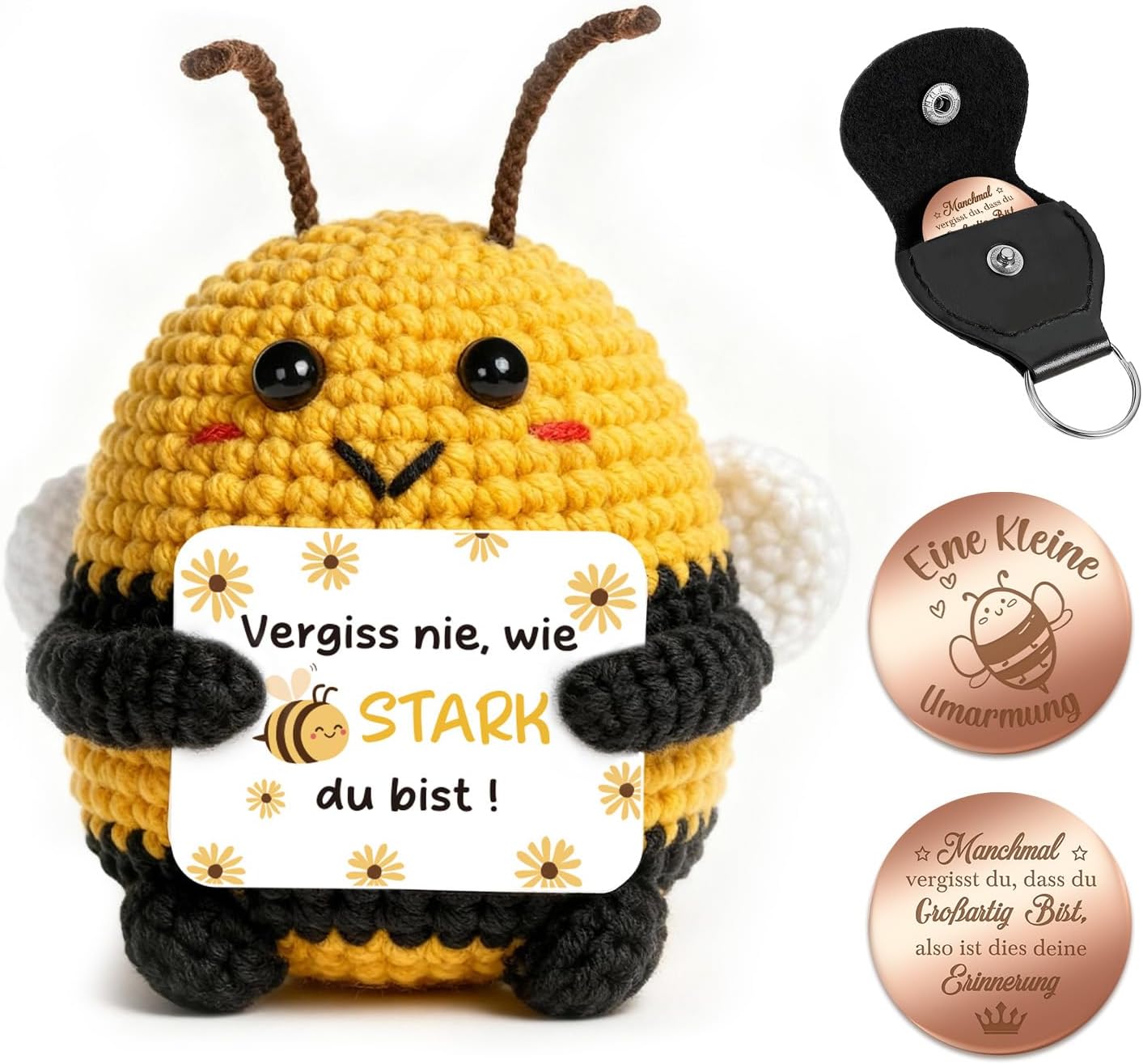Wenn du Mut, innere Stärke und Motivation als Botschaft verschenken möchtest, liefert der Giftota Pocket Hug mit der handgehäkelten Biene plus der Glücksmünze im Etui gleich zwei Ebenen: sichtbar am Ort und tragbar unterwegs (laut Beschreibung über das Etui als Schlüsselanhänger). Das macht das Set für symbolische Anlässe recht „zielgenau“.