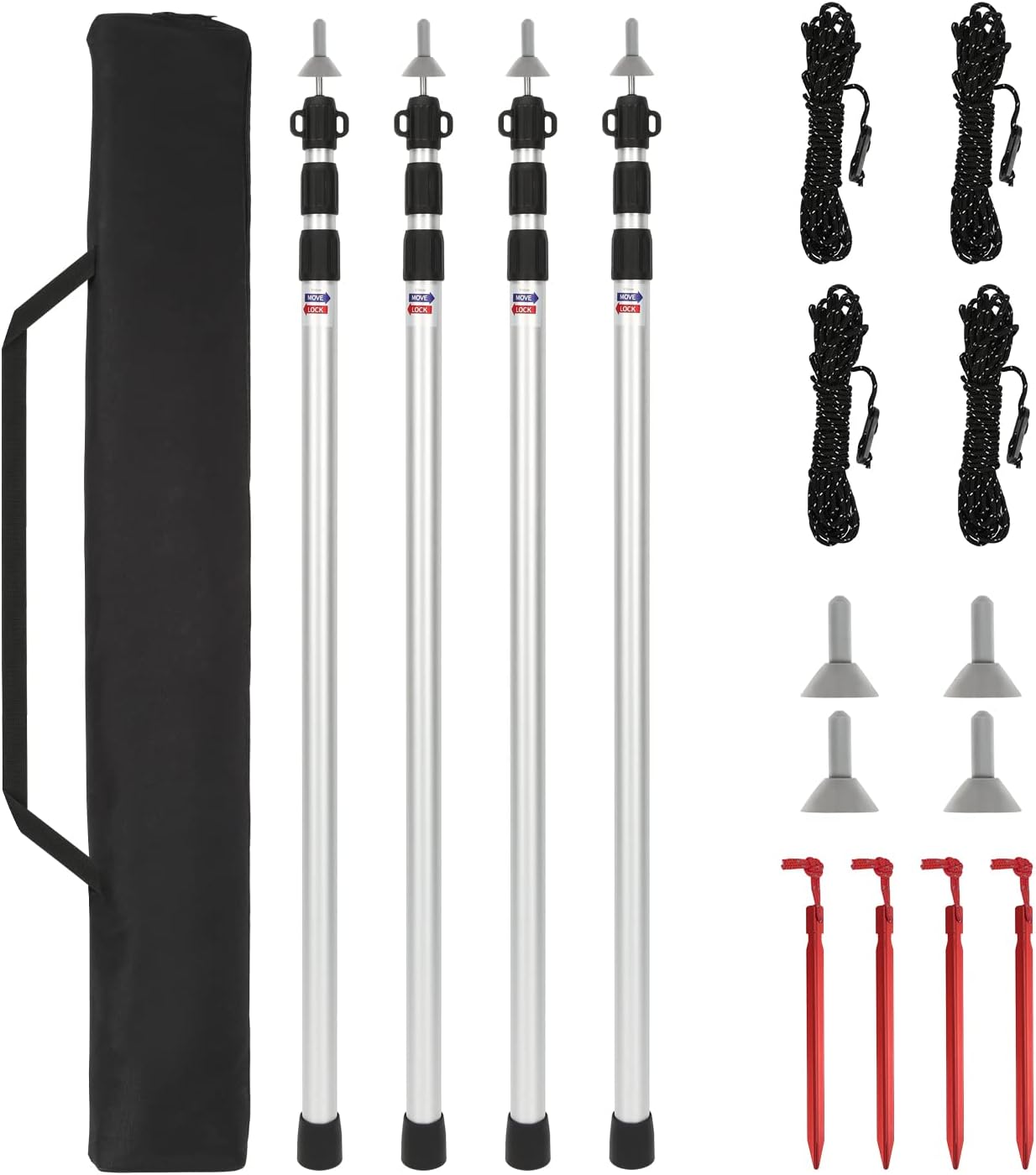 Gimisgu Teleskopstangen für Zelte – 4 verstellbare Aluminium-Stangen von 90 bis 230 cm inkl. Aufbewahrungstasche