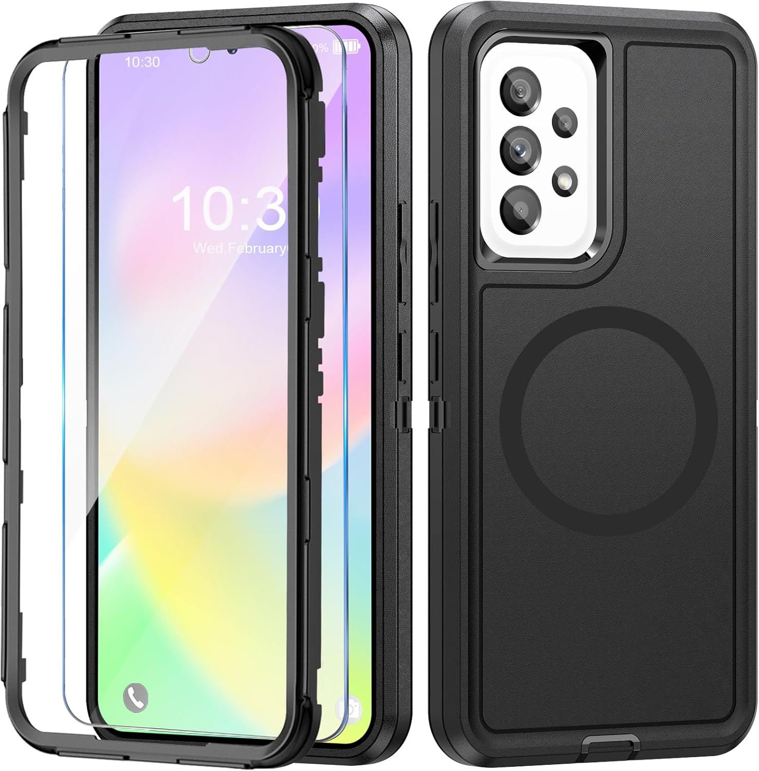 Giyer Handyhülle für Samsung Galaxy A53 5G (mit Schutzfolie, 360° stoßfest, magnetischer Ring) – Schwarz