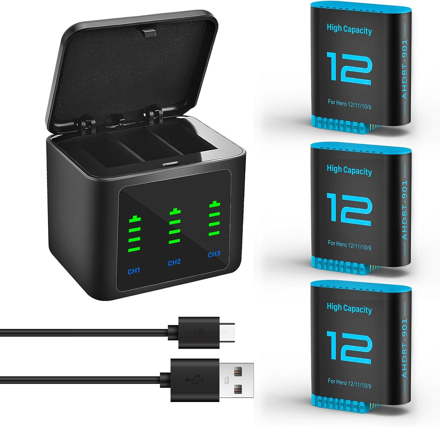 GoPro Hero12 Akku Ladegerät Kit 3x 2580mAh