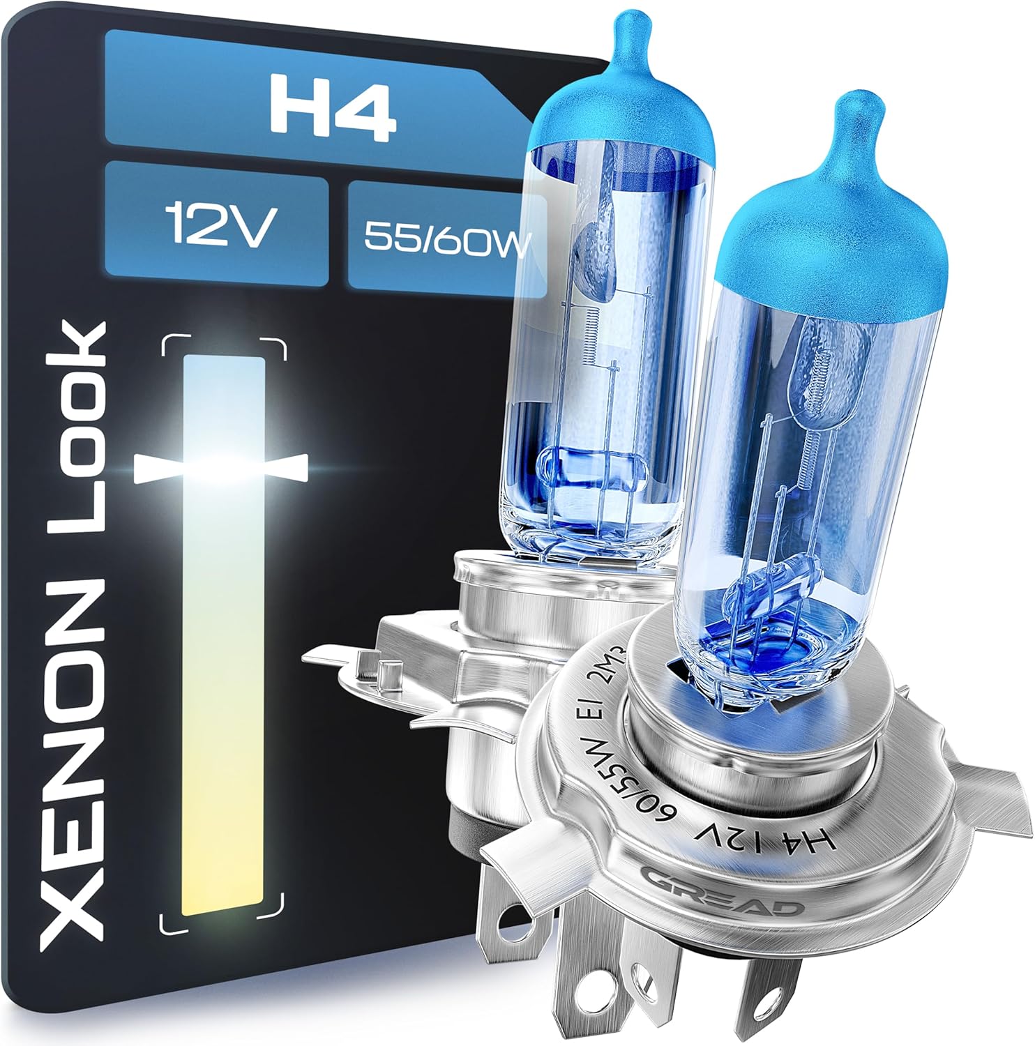 Gread 2x H4 Frontscheinwerfer Halogenlampen superwhite (8500K, 55W) – eintragungsfrei