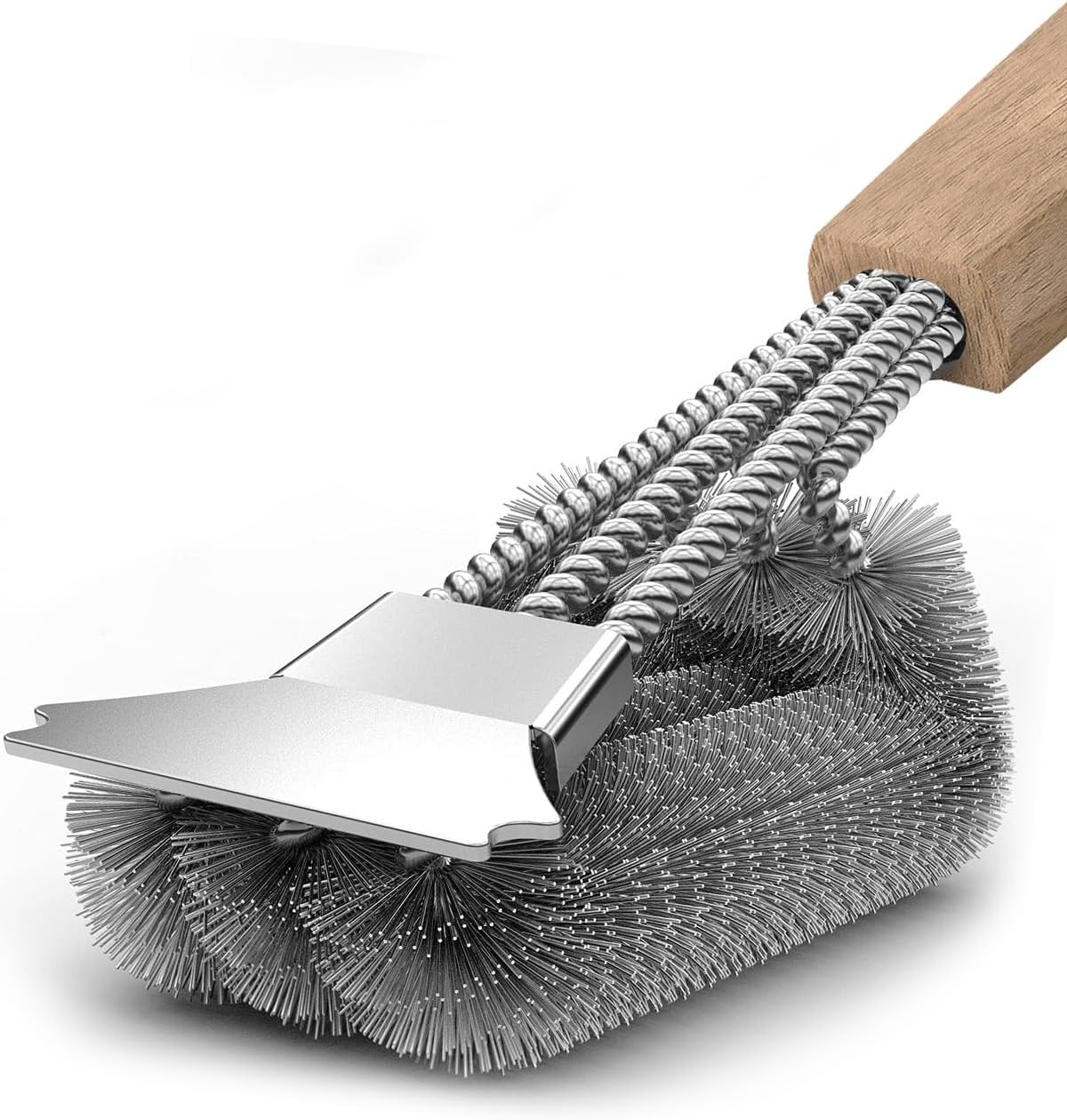Wer nach dem Grillen nicht ewig schrubben will, braucht meist zwei Dinge: Reichweite, damit man nicht zu nah an die Hitze muss, und einen passenden Mix aus Borsten und Schaber für unterschiedliche Verschmutzungen. Genau dafür ist diese Grillbürste mit Holzgriff konzipiert. Sie kombiniert dichte Edelstahlborsten mit einem Edelstahlschaber sowie einem Kantenschaber – auf Papier also ein ziemlich praxisnahes 3-in-1-Konzept.